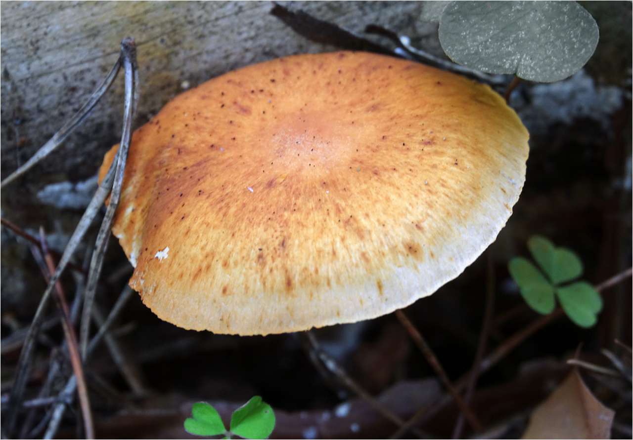Описание гриба: Юго-Восток Московской области, Раменский район, окрестности н/п Хрипань, смешанный лес с преобладанием лиственных, на стволе мертвого дерева. 11.09.2025.