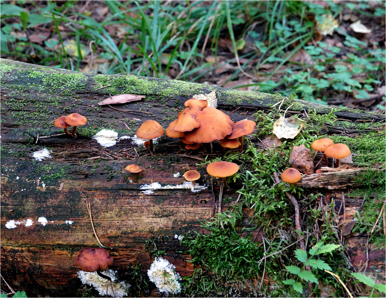 На последних трёх фото — pholiota lignicola (кроме, возможно, крайнего левого гриба не в фокусе, с желтым краем). С жёлтой шляпкой — под вопросом.