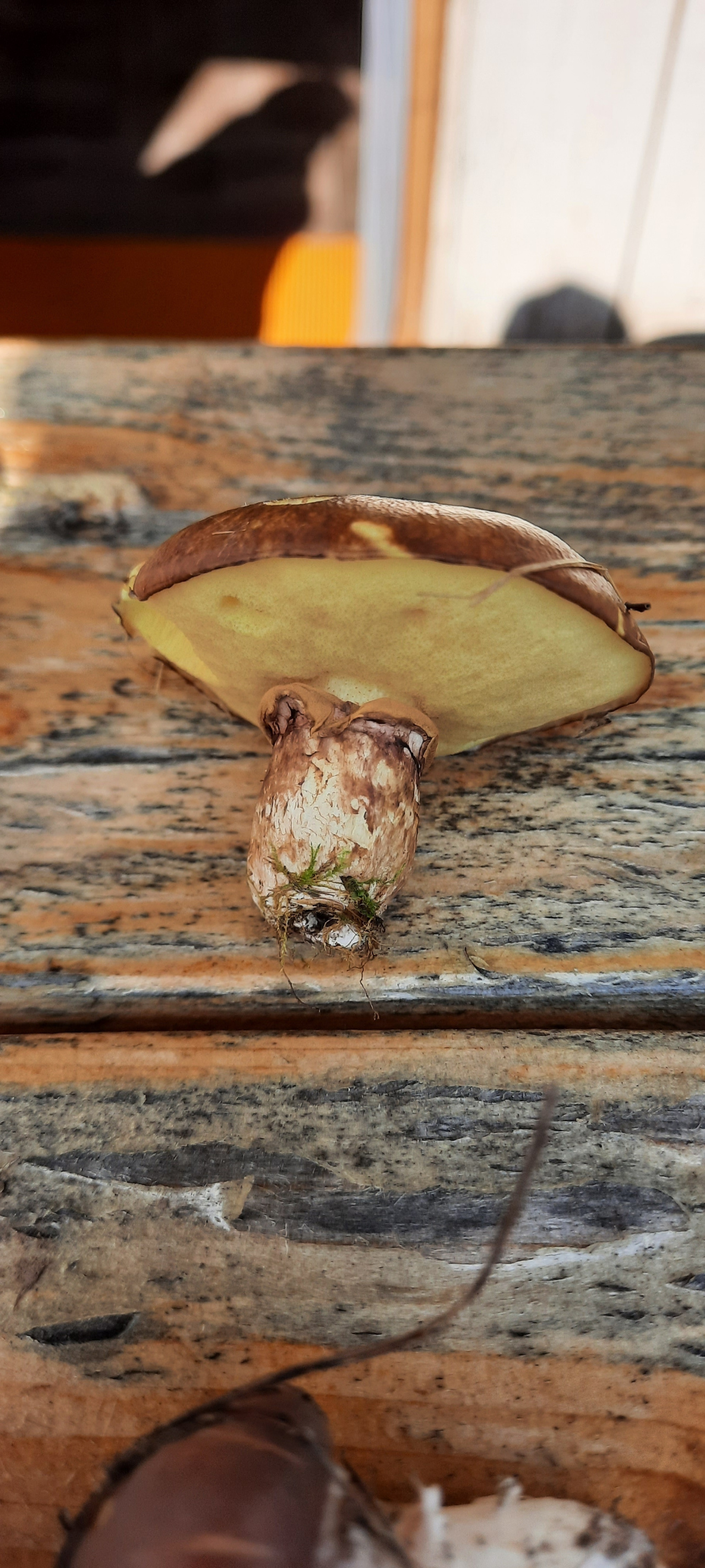 Описание гриба: Коричневая шляпка, под шляпкой желтая, запах грибной. Может масленок?