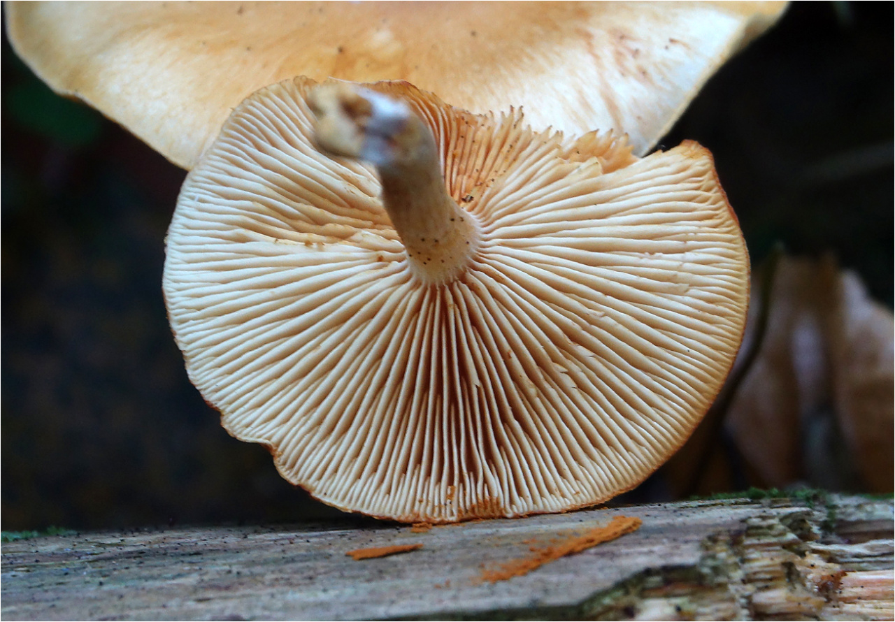 Описание гриба: Юго-Восток Московской области, Раменский район, окрестности н/п Хрипань, смешанный лес с преобладанием лиственных, на земле, у поваленного ствола сосны. 11.09.2025.