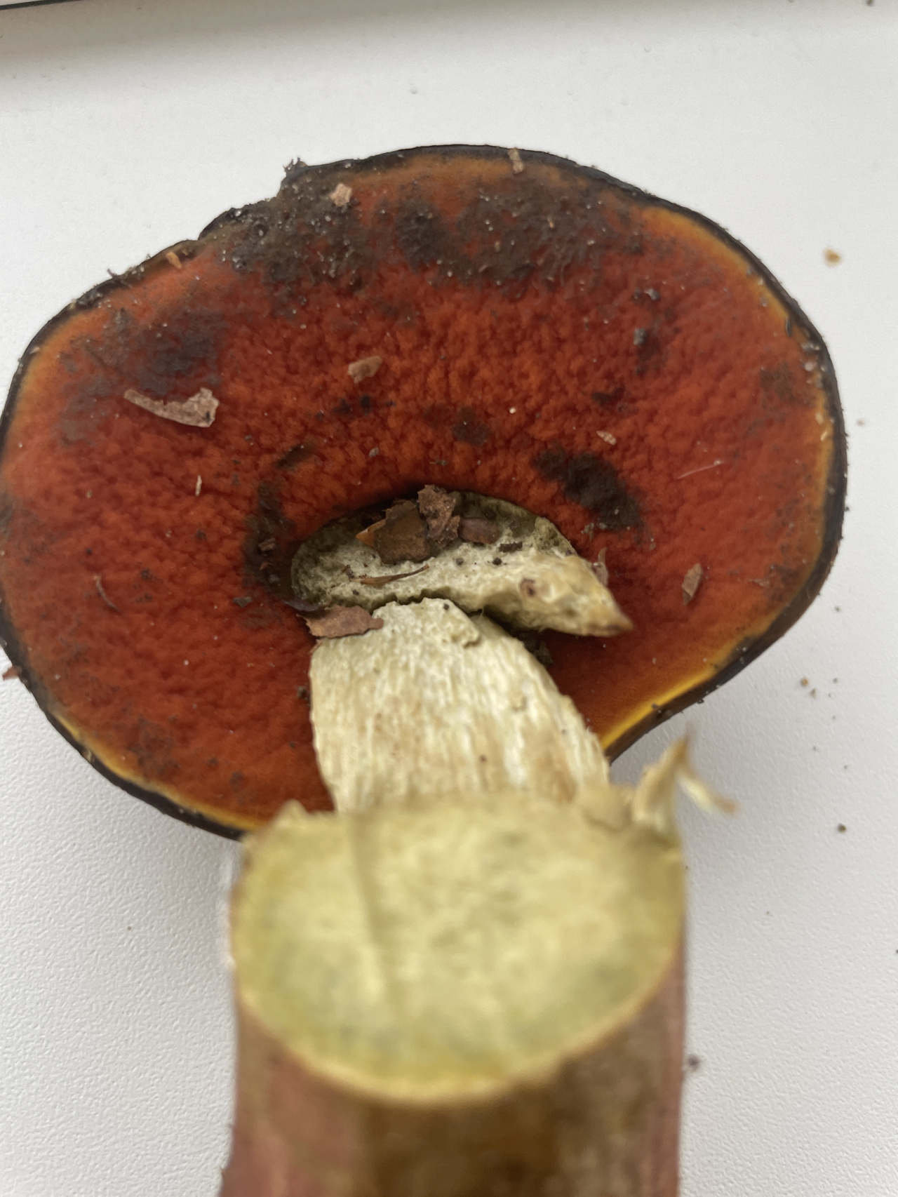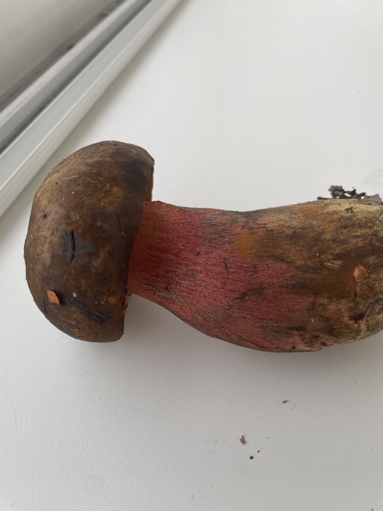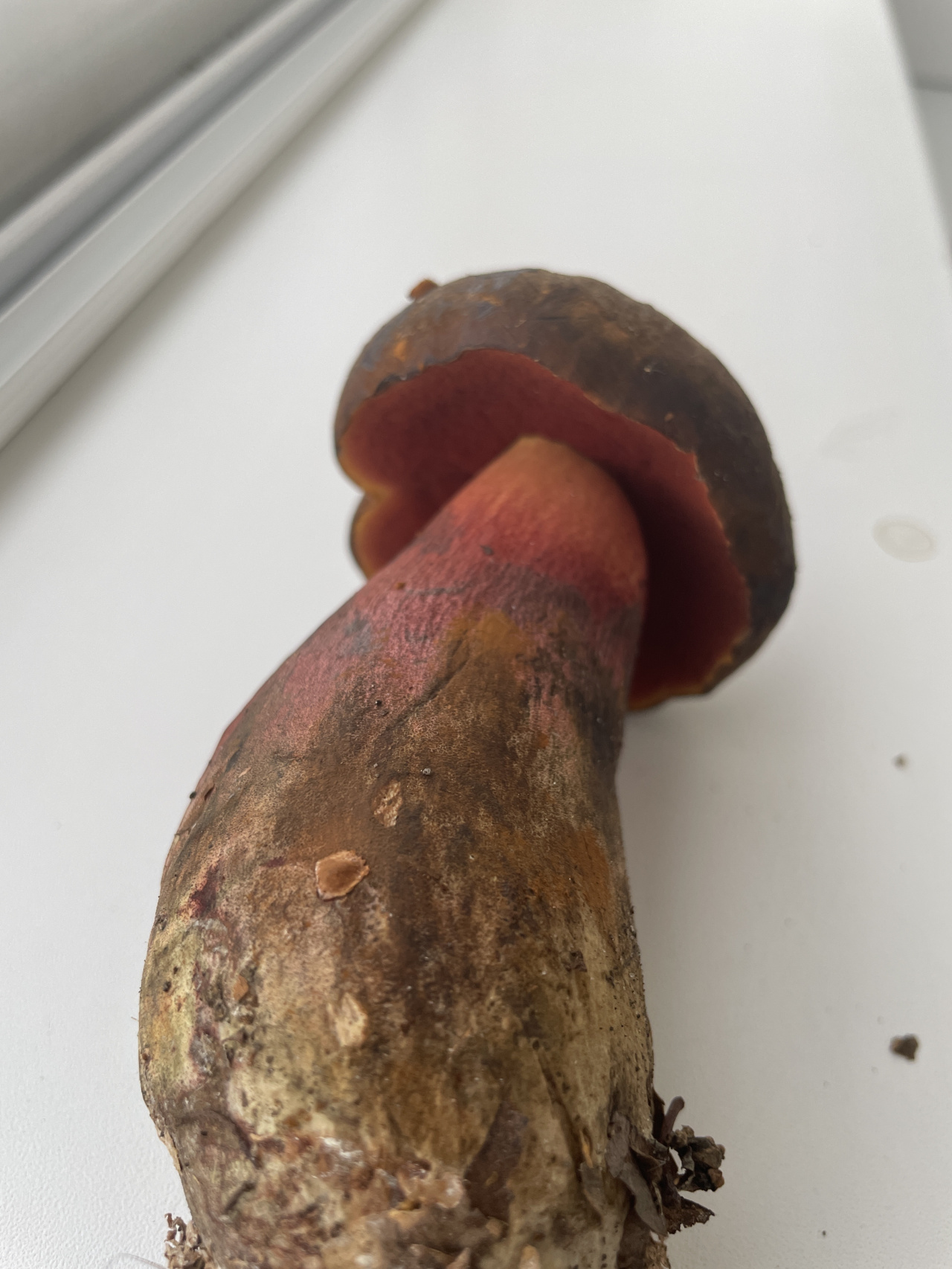 Наиболее вероятно, что это Дубовик Крапчатый. Но полной уверенности нет, может быть Дубовик Обыкновенный (шляпка светлее). Не вижу чётко окрашивания в синий на срезе — это смущает, не двойники ли