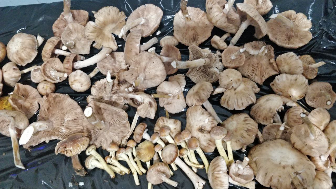 Ну это съедобные опята, из рода Armillaria. Кольцо (у молодых грибов) или кольцевая зона (у старых) есть.