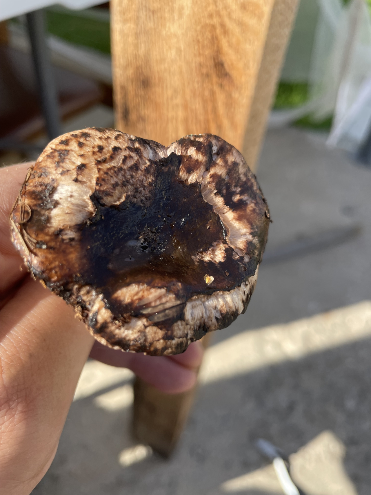 Описание гриба: Смешанный лес, рос один, запаха нет, либо слабый запах, гриб будто покрыт черной краской, которая с него слезает.