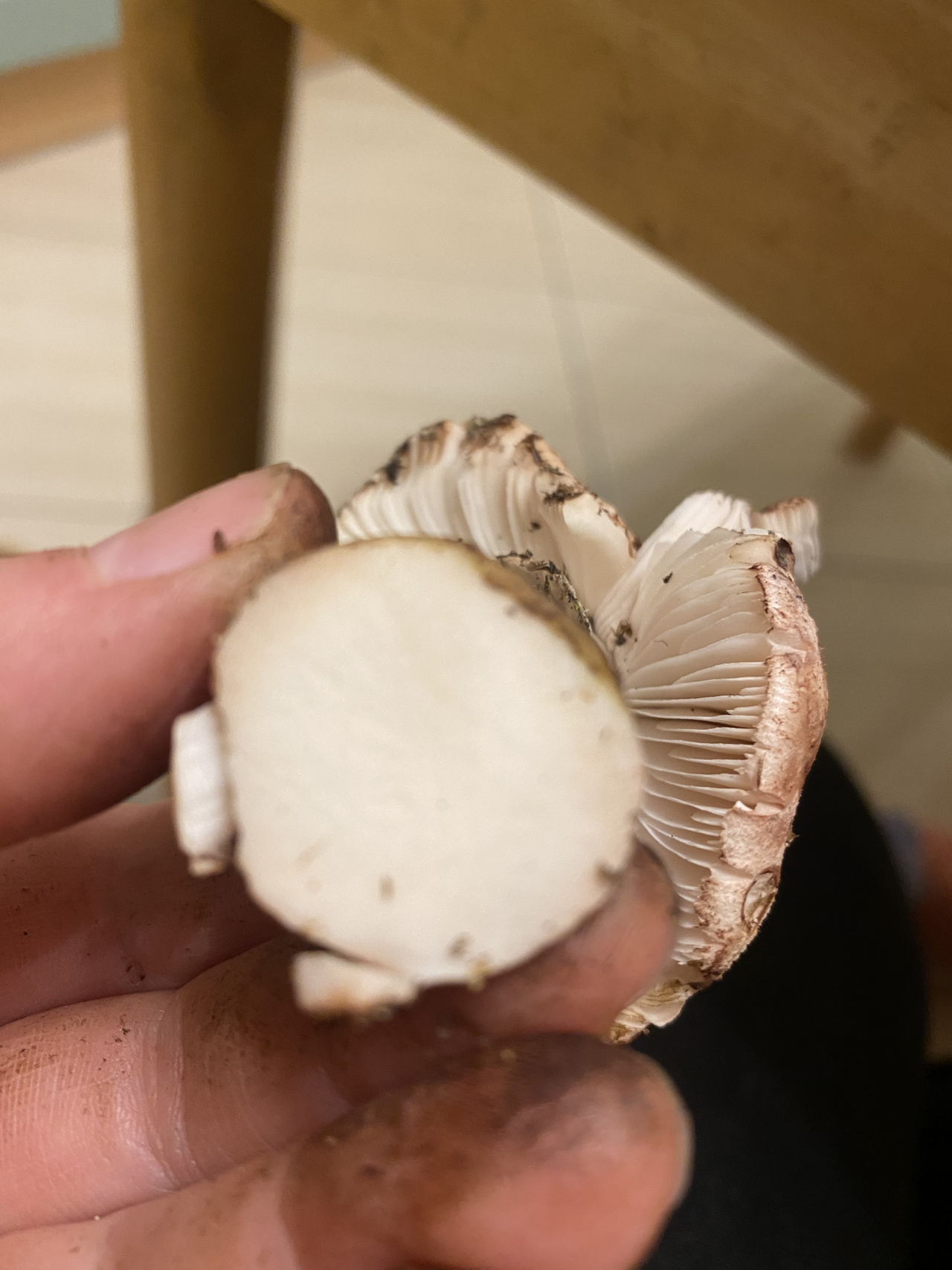 Описание гриба: Место сборка смешанный лес. Рос прямо на муравейнике. Выглядел крепким, порядка 6-7 см. Ножка крепкая в диаметре примерно 2 см, на срез белоснежная. Без запаха. Пластинчатый, на ножке юбка, шляпка розоватая, выпуклая. После среза в течение суток цвет не изменился.