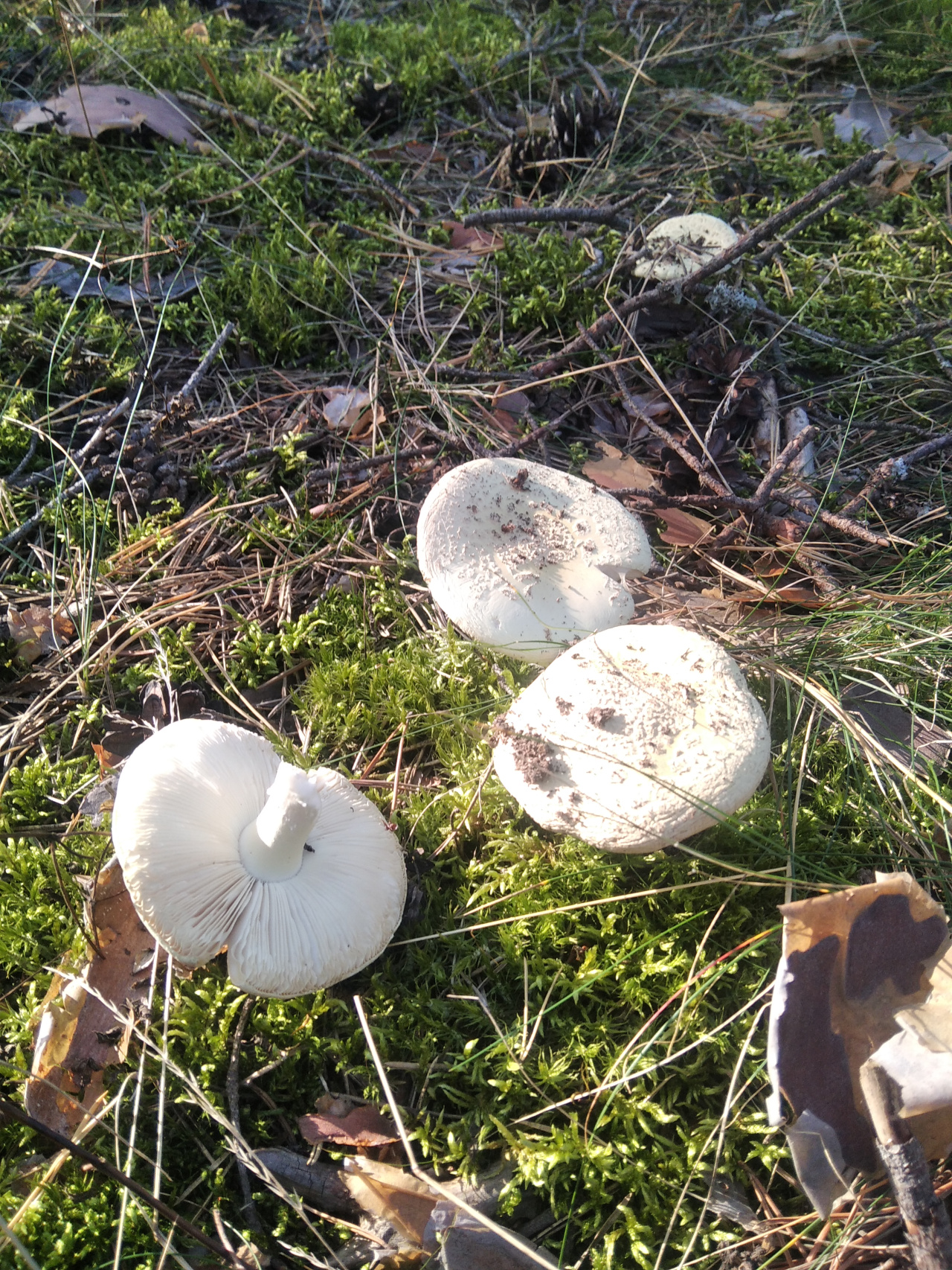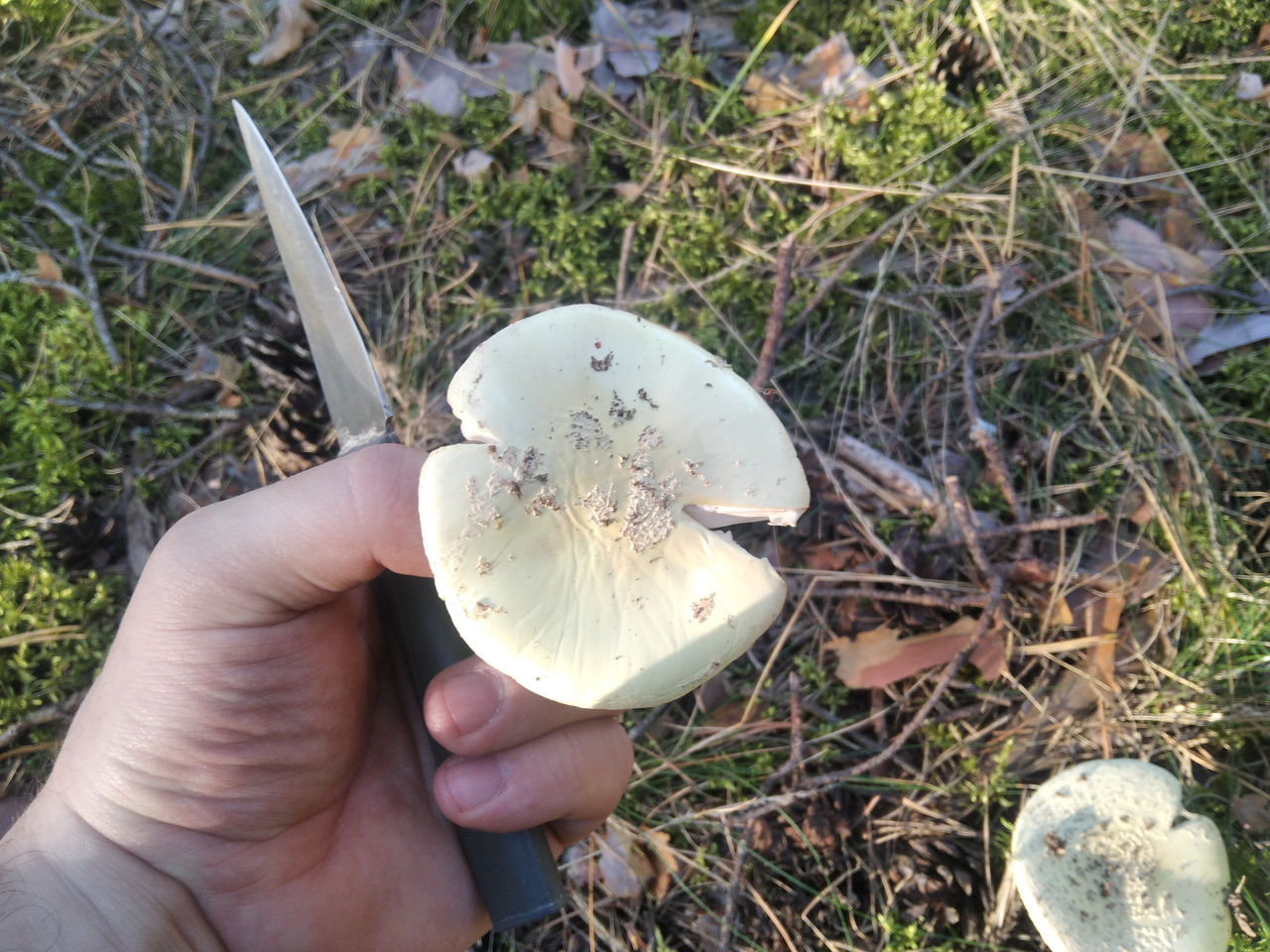 На Мухоморы я даже не подумал. А что это за Мухоморы могут быть? У зелёного и вонючего ножки длинные, они высоко над почвой шляпку поднимают. И у маленьких Мухоморов обычно шляпка как яйцо, а тут у даже у мелких она уже плоская