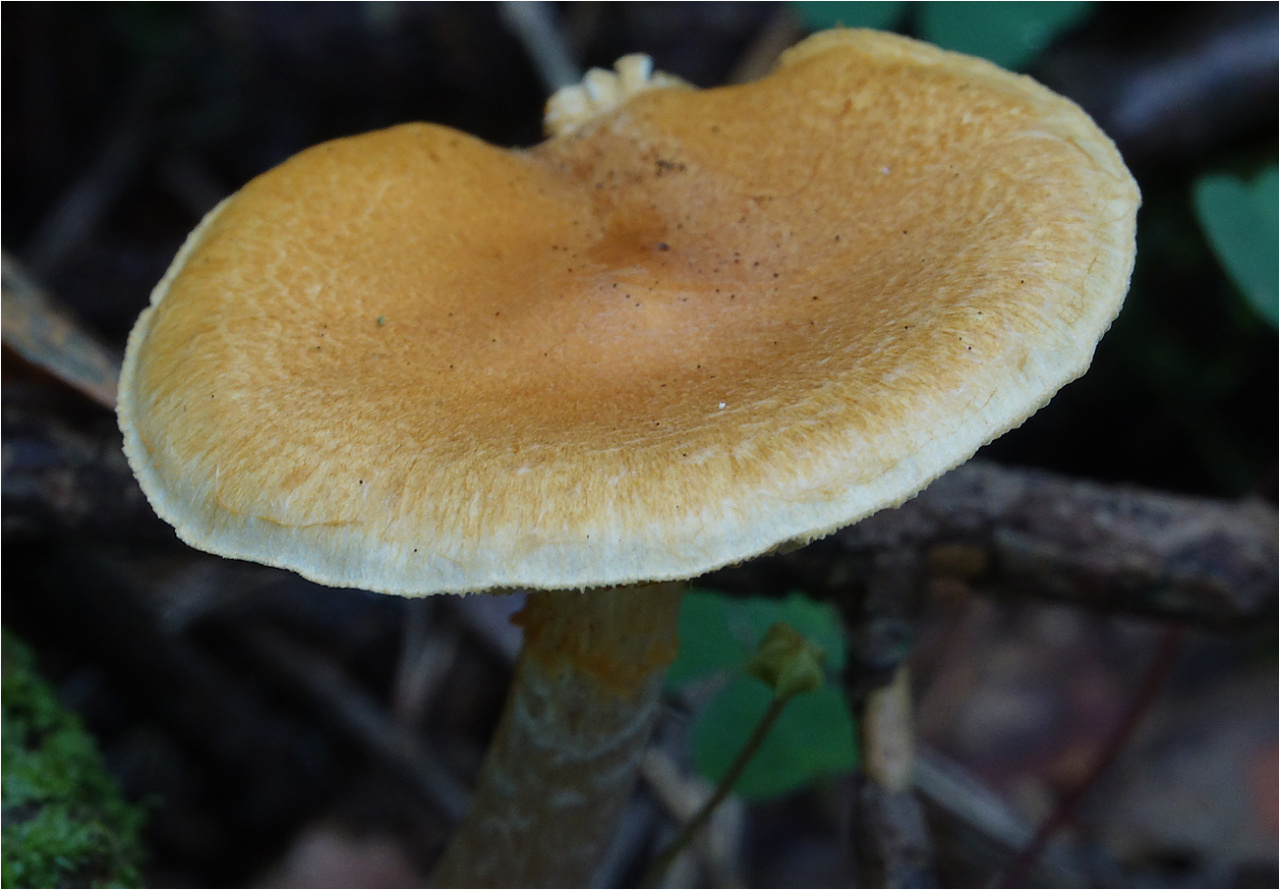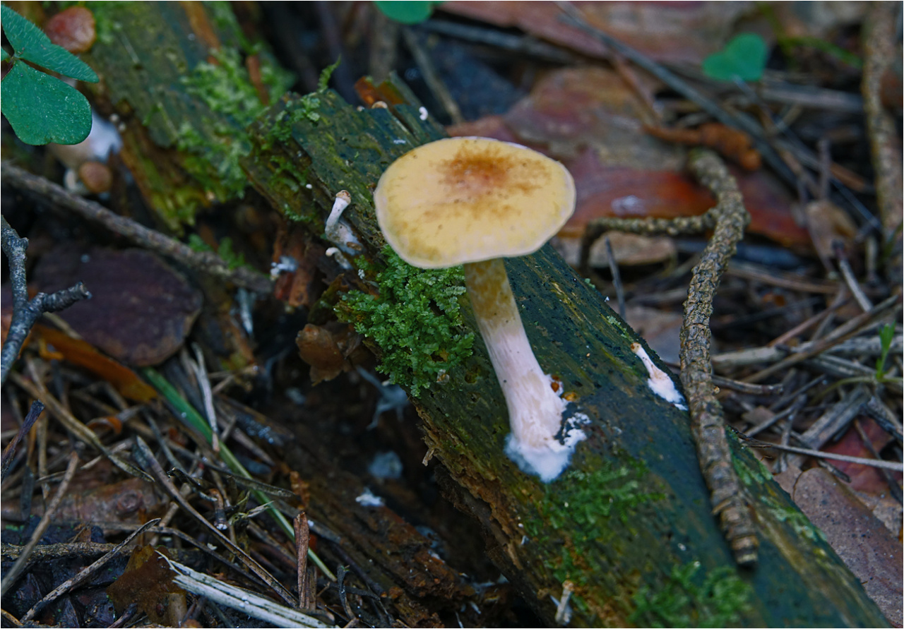 Описание гриба: Юго-Восток Московской области, Раменский район, окрестности н/п Хрипань, смешанный лес с преобладанием лиственных, на гниющей древесине. 08.09.2025.