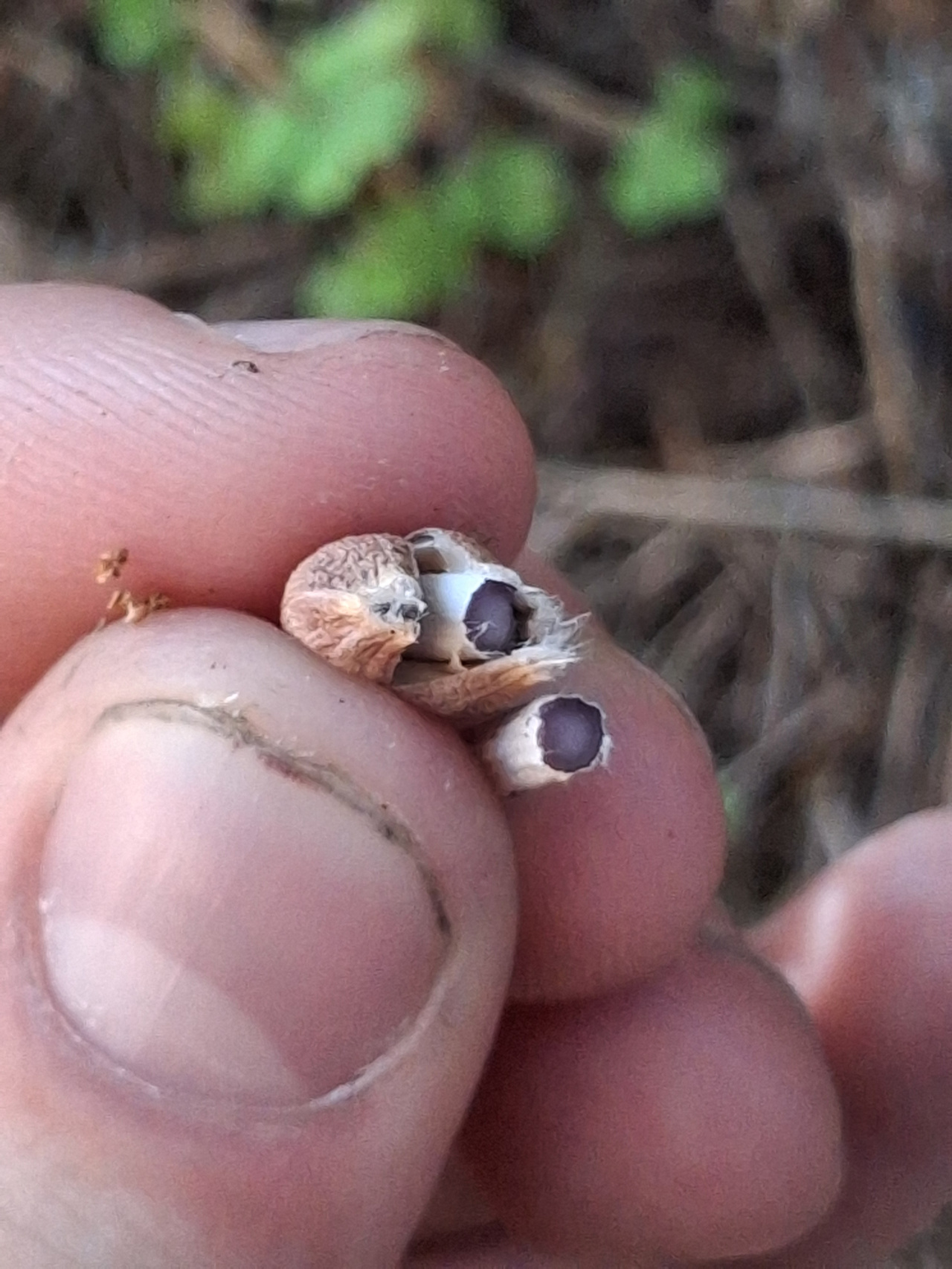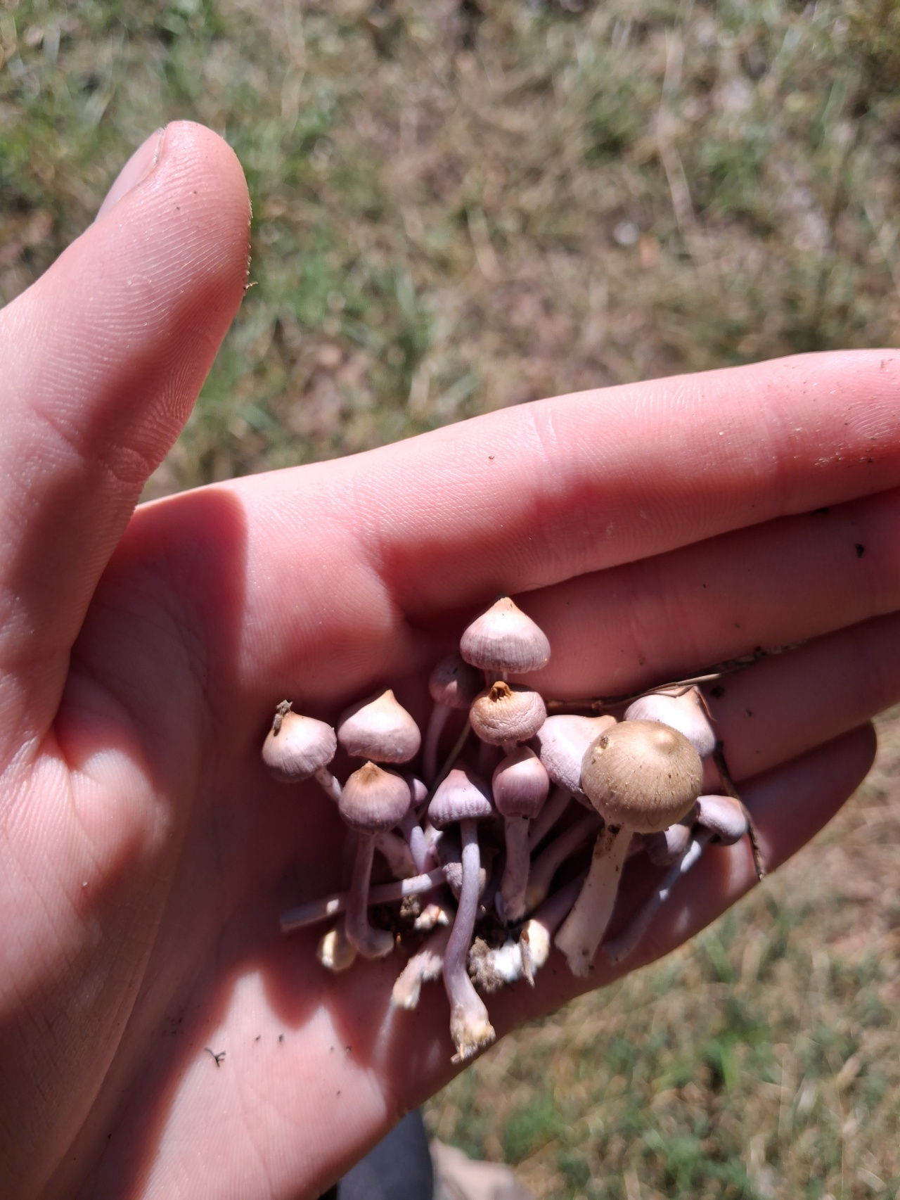 Описание гриба: Не большой рос в лесу рядом с не большой свалкой ножка в нутрии фиолетовая шляпка с не большими фиолетовыми проблесками пахнет землей
