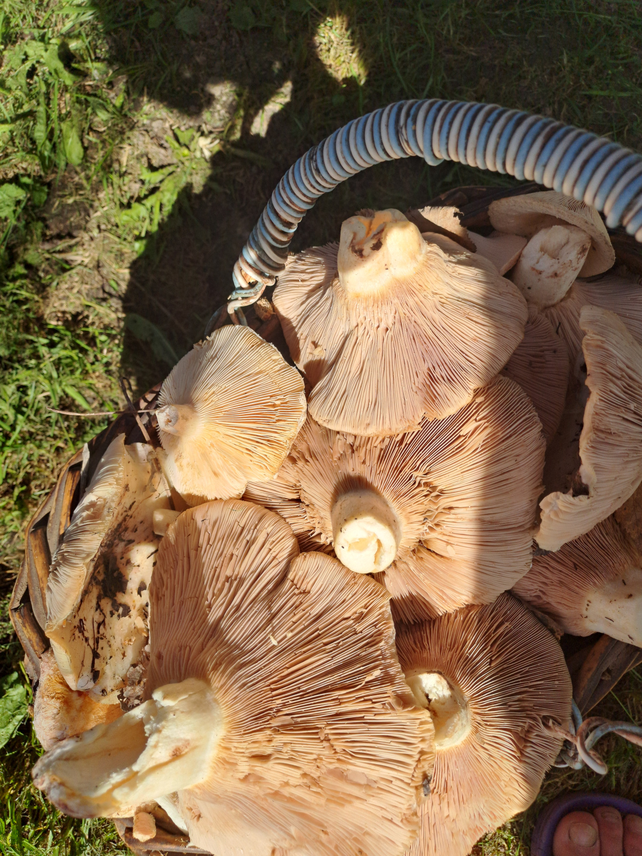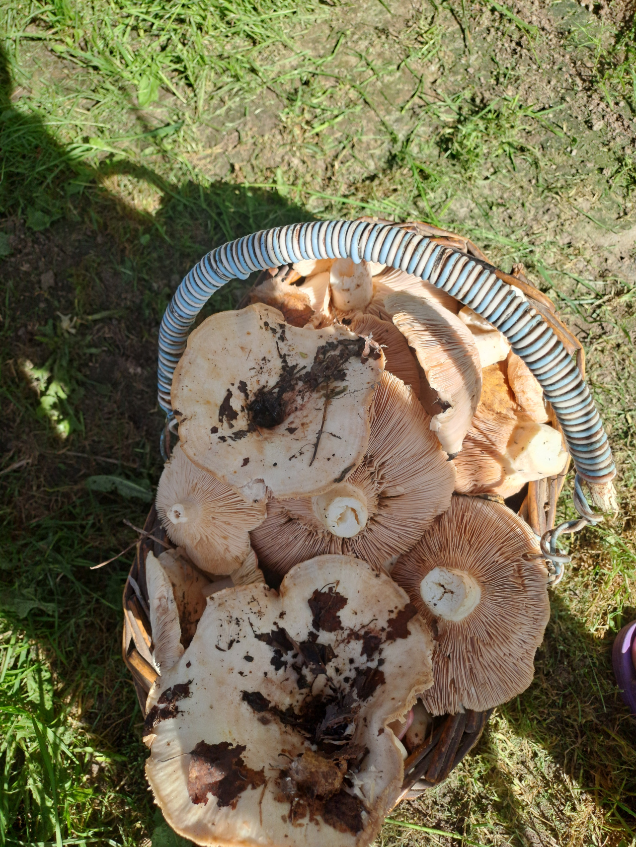 Описание гриба: Похож на белый груздь,рос семейной по два вместе,смешанный лес,на полянка,срез на ножке с дыркой,на вкус не горит,шляпа с вороной цвет белый с чуть заметным жжелто рыжим и пятнами ,после среза немного порозоаели под шляпкой