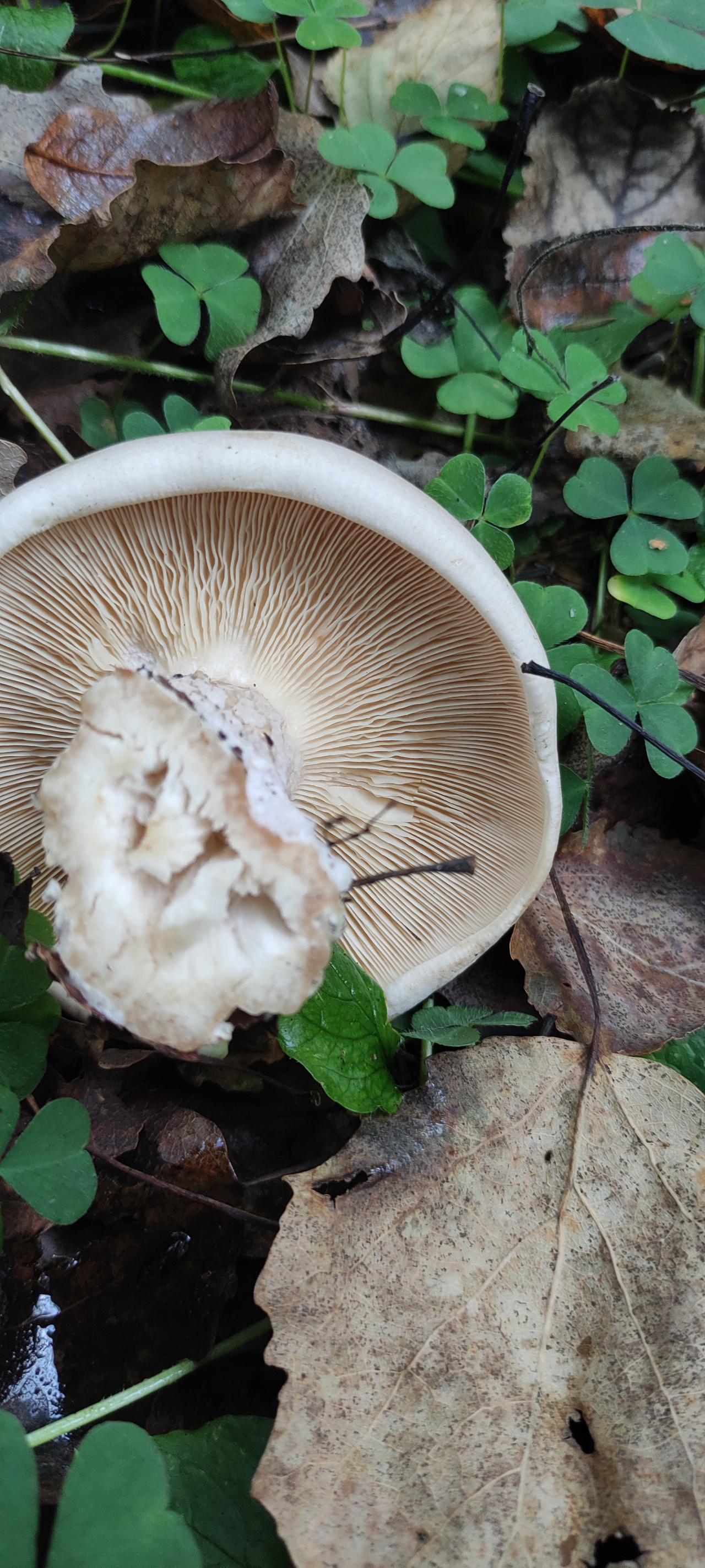 Описание гриба: Еловый лес. Ножка ноздреватая, крепкая, прямая. Шляпка серовато-бежевая. Ножка на срезе и пластины почти белые. Юбочки нет, отверстия в ножке нет, молочка нет