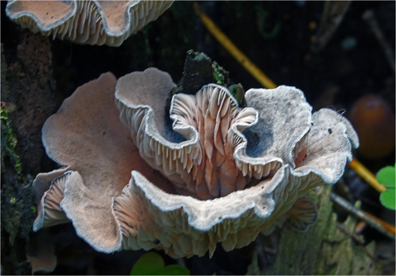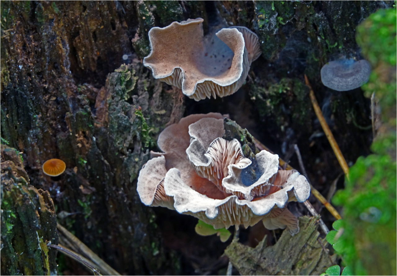 Описание гриба: Юго-Восток Московской области, Раменский район, окрестности н/п Хрипань, смешанный лес с преобладанием лиственных, на пне. 08.09.2025.