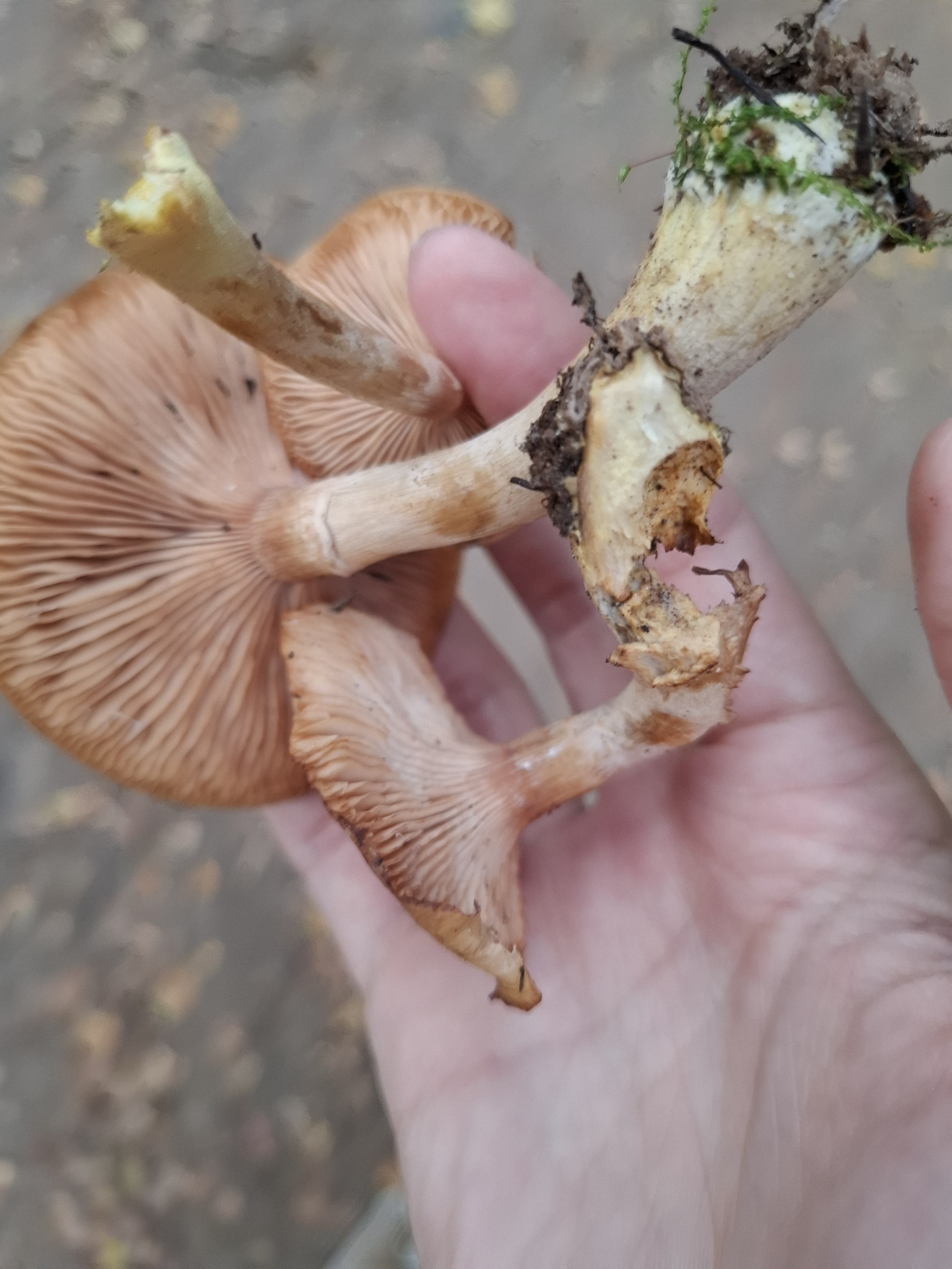 Описание гриба: Желтые грибы, нашла в лесу Пехорка, на дереве которое сломано, на нем было много моха.