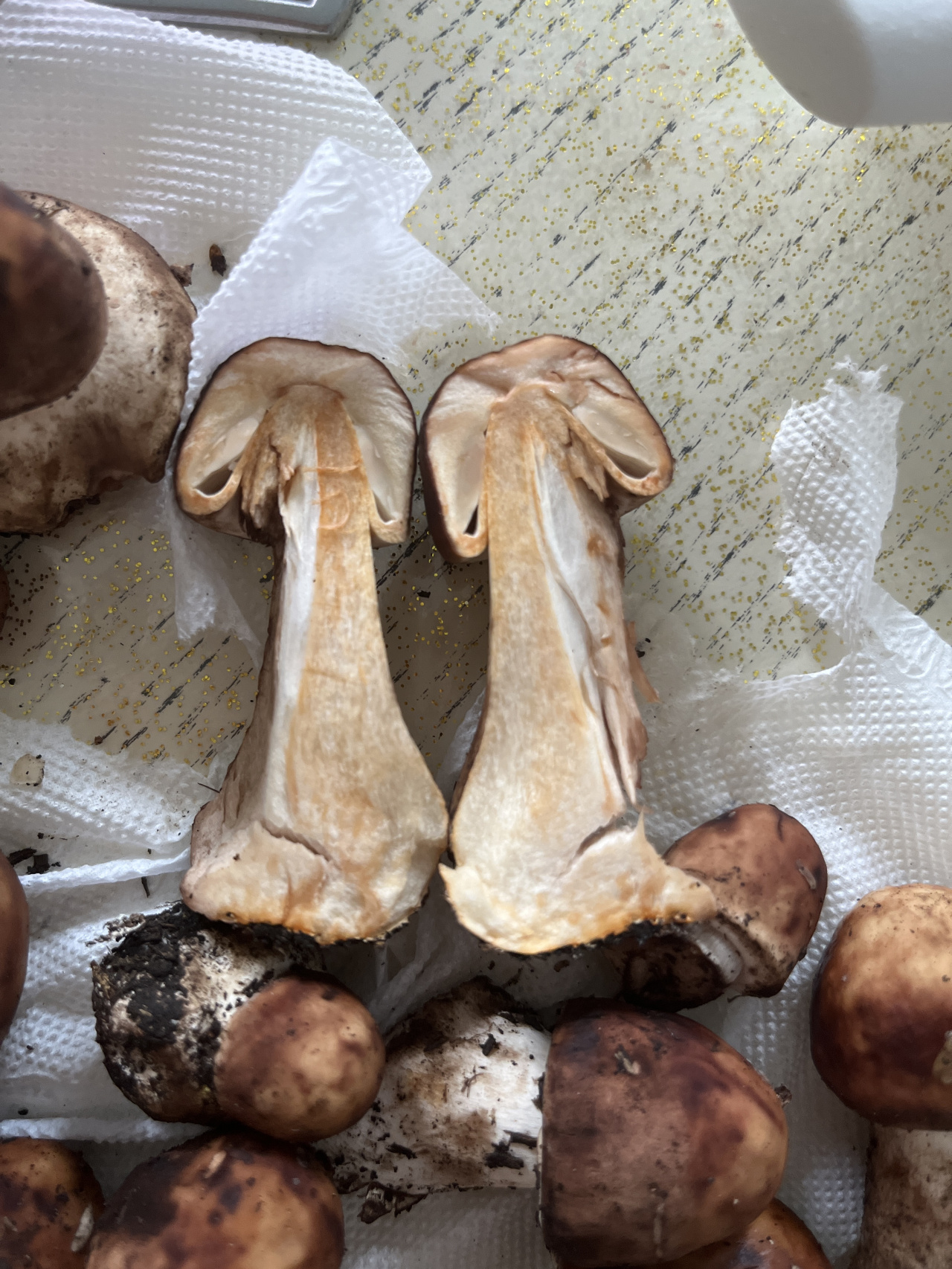 Описание гриба: Шляпка конусовидная, коричневая, ножка белая, без сеточки. При срезе сразу розовеет, потом срез коричневый. Внутри шляпки пластины. Запах пряный грибной, съедобный, горечь не чувствуется. Растет в хвойном лесу, на земле, под соснами
