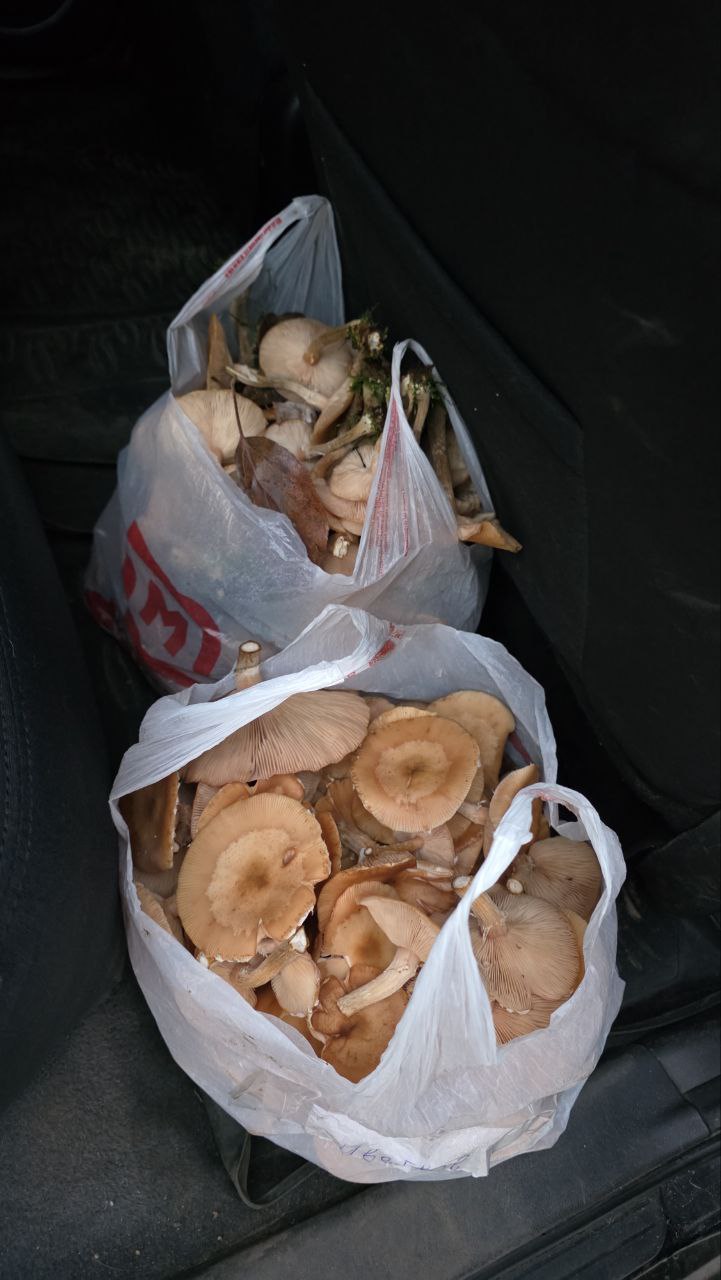 Описание гриба: Добрый вечер, нашли вот такие грибы, но точно ли опята? Росли кучно на трухлявом дереве упавшем.