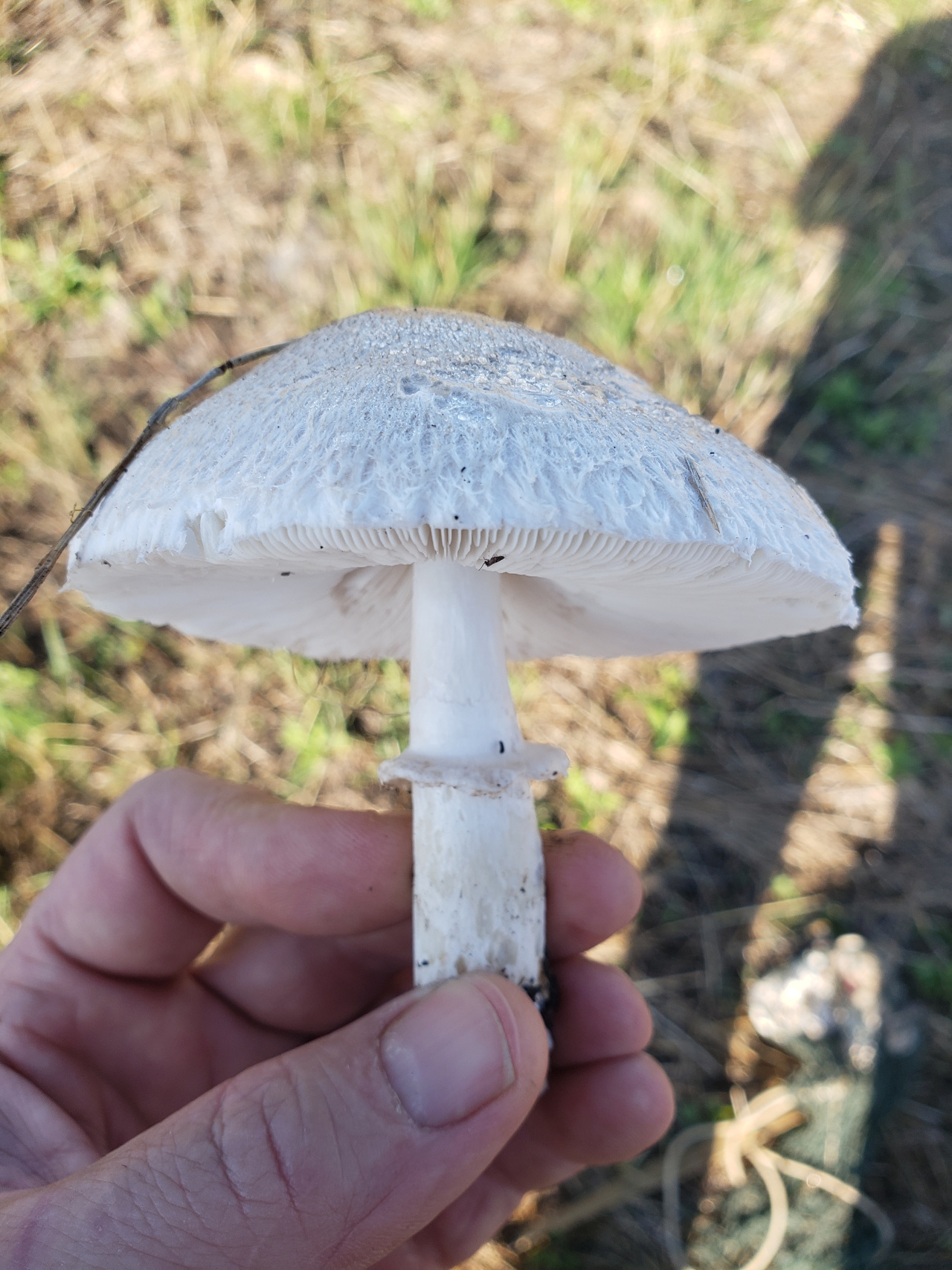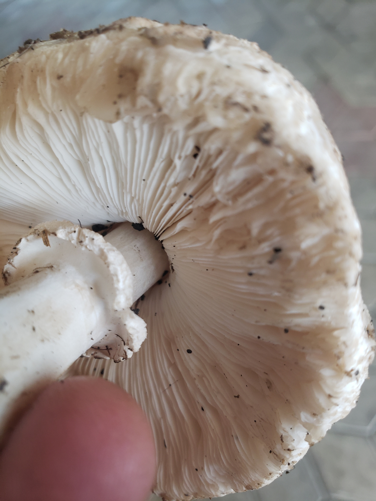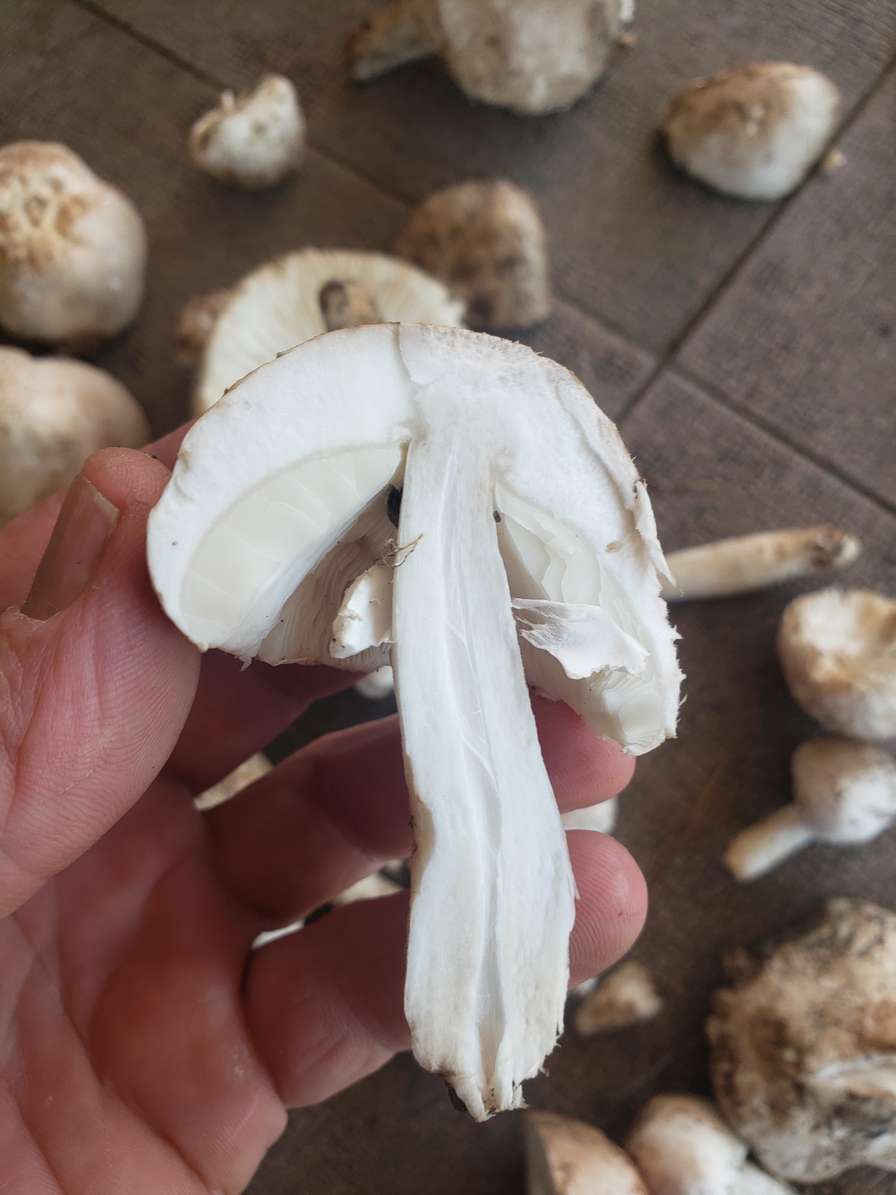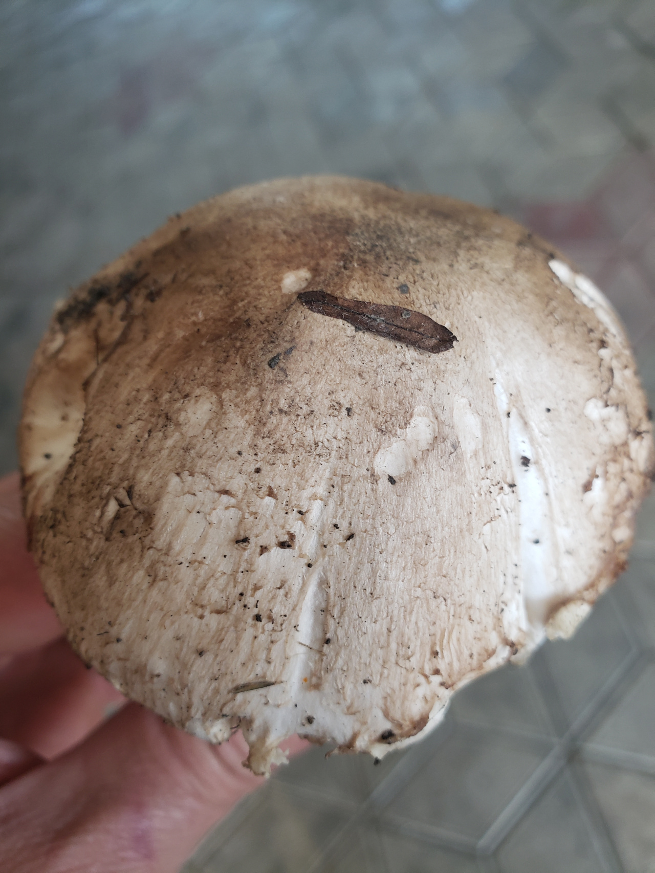 Описание гриба: Похож на шампиньон, собран в поле,на сенокосе,. Запах, влажной кожи, приятный как у шампиньона, цвет на срезе вроде не меняется при надавливании тоже.