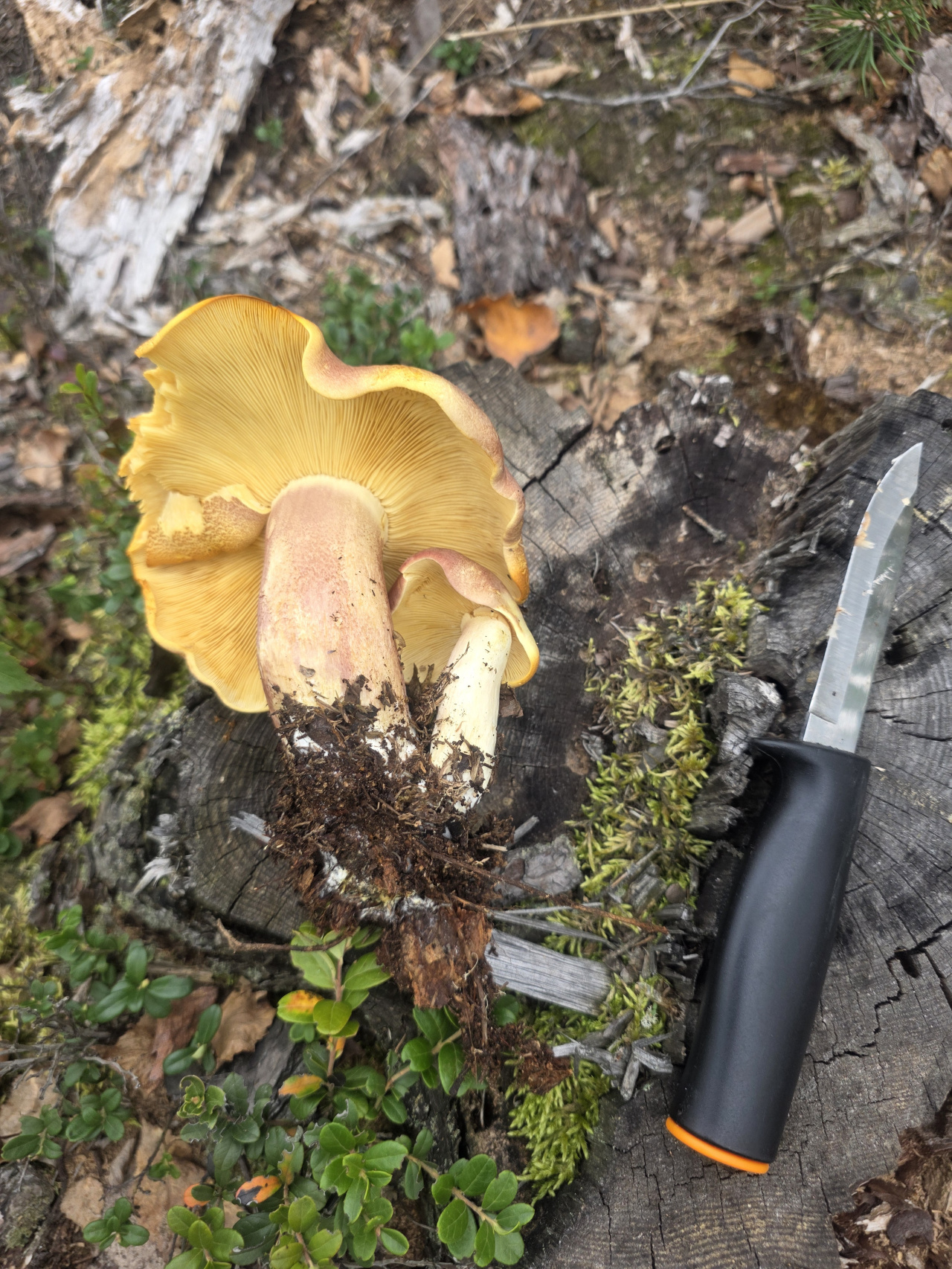 Описание гриба: Заволжье, сосновый лес, пни после вырубки, посажены молодые сосны, поросль молодой берёзы. Вокруг пей растут эти грибы, плотная структура, запах приятный, шляпы в диаметре до 20см