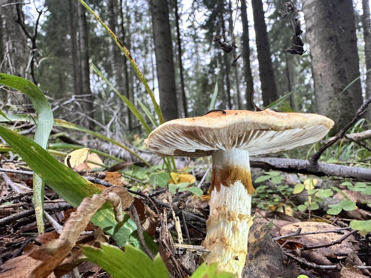Ещё один вид похожий находил в лиственном лесу. Чуть светлее шляпка и чуть иначе выглядит ножка. Не сразу и понял, что иной гриб. Кажется помогли его мне определить. Уже не помню какого вида. Помню, что по описанию был с непонятными свойствами.
