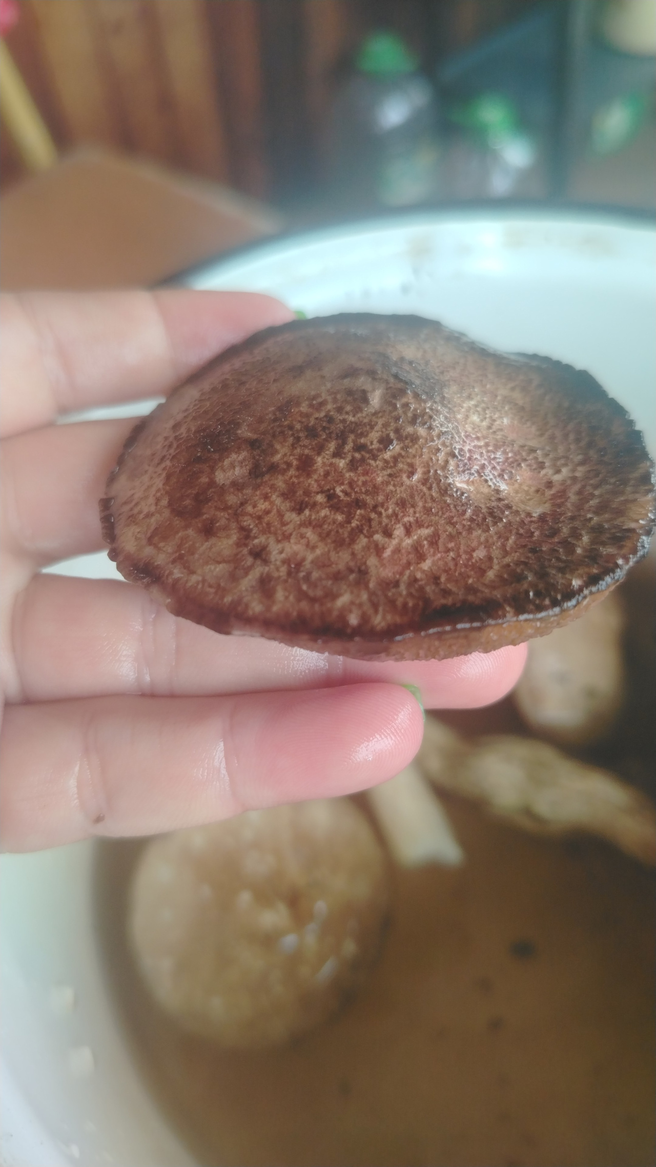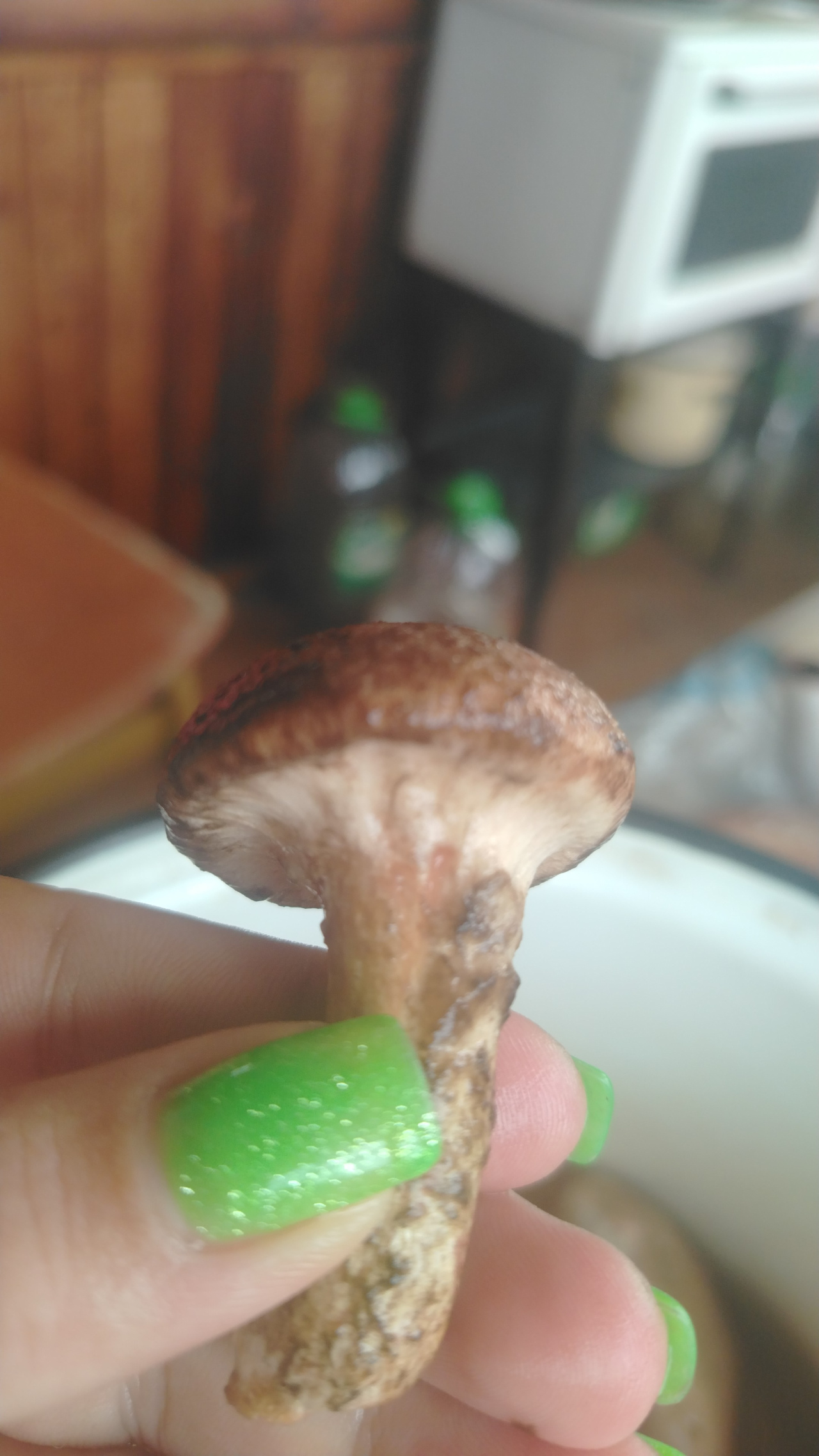 Описание гриба: Оба гриба на шляпке красноватые, под шляпкой 1.гриба губка коричневая