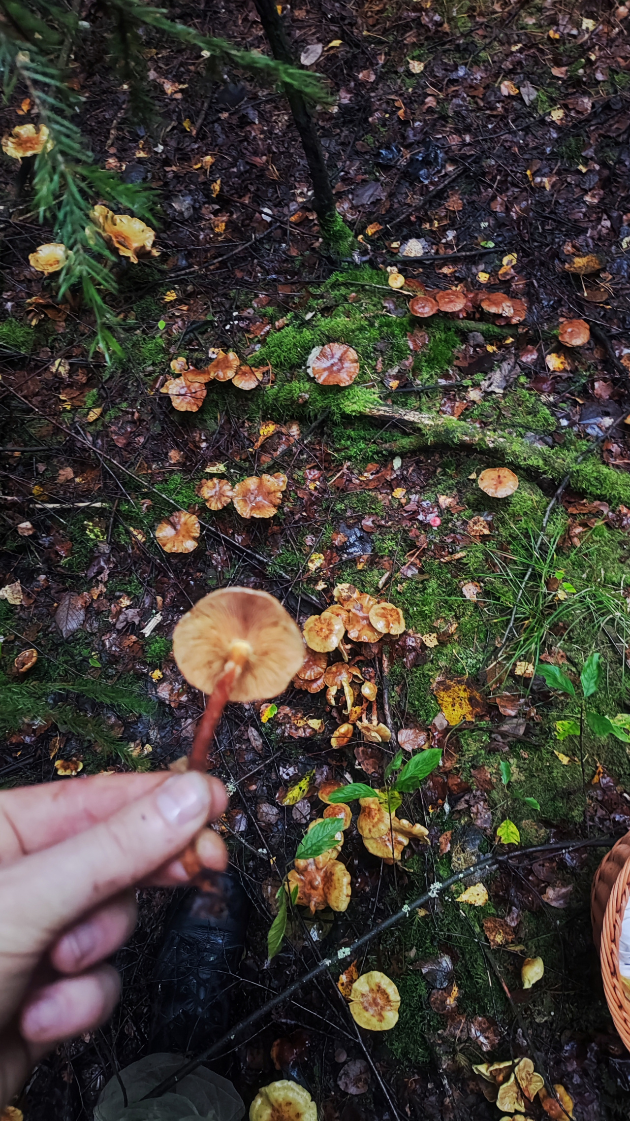 Описание гриба: Росли большой кучей, лес смешанный, влажный. На данном участке леса преобладают ёлки, а грибы растут на гнилой древесине/ветках.