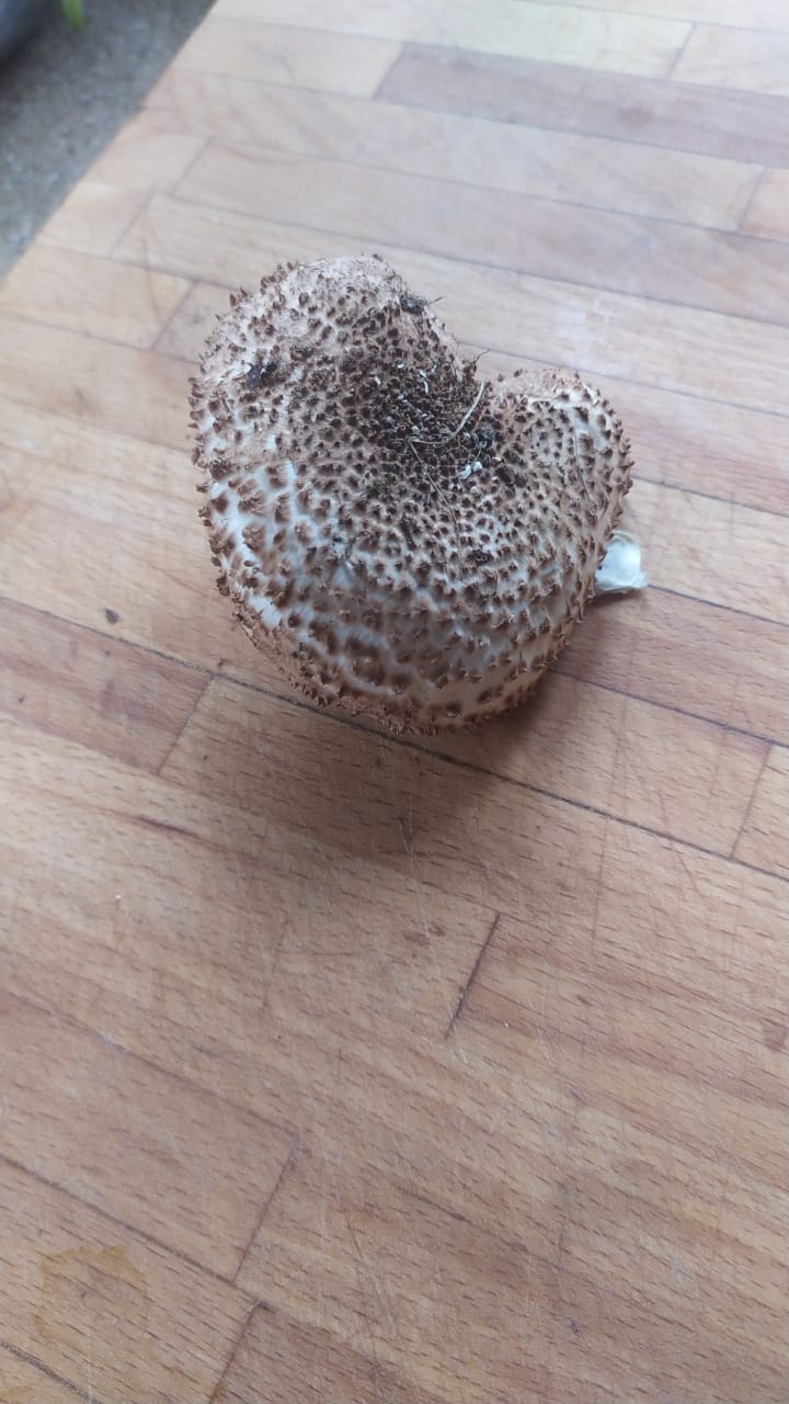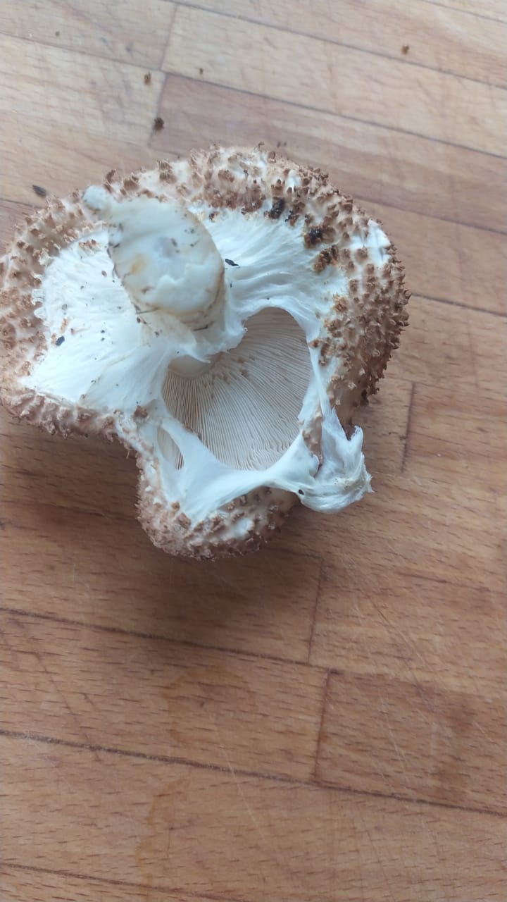 Описание гриба: найден 20 сентября 2025 года на даче в 15 км от Шереметьево, под каштаном возрастом 15 лет их росло около десятка. Запах приятный, похож на белый гриб. Пластинки белые, срез белый, цвет не меняет.