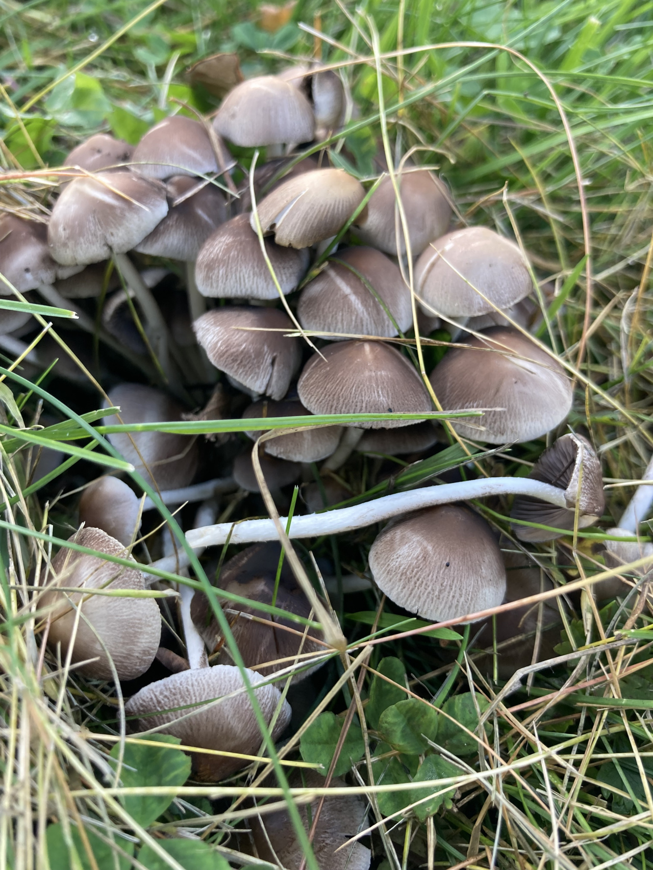 Описание гриба: Растут большими группами на лужайке, где так же произрастают шампиньоны.Это кто?) За ответы заранее спасибо!
