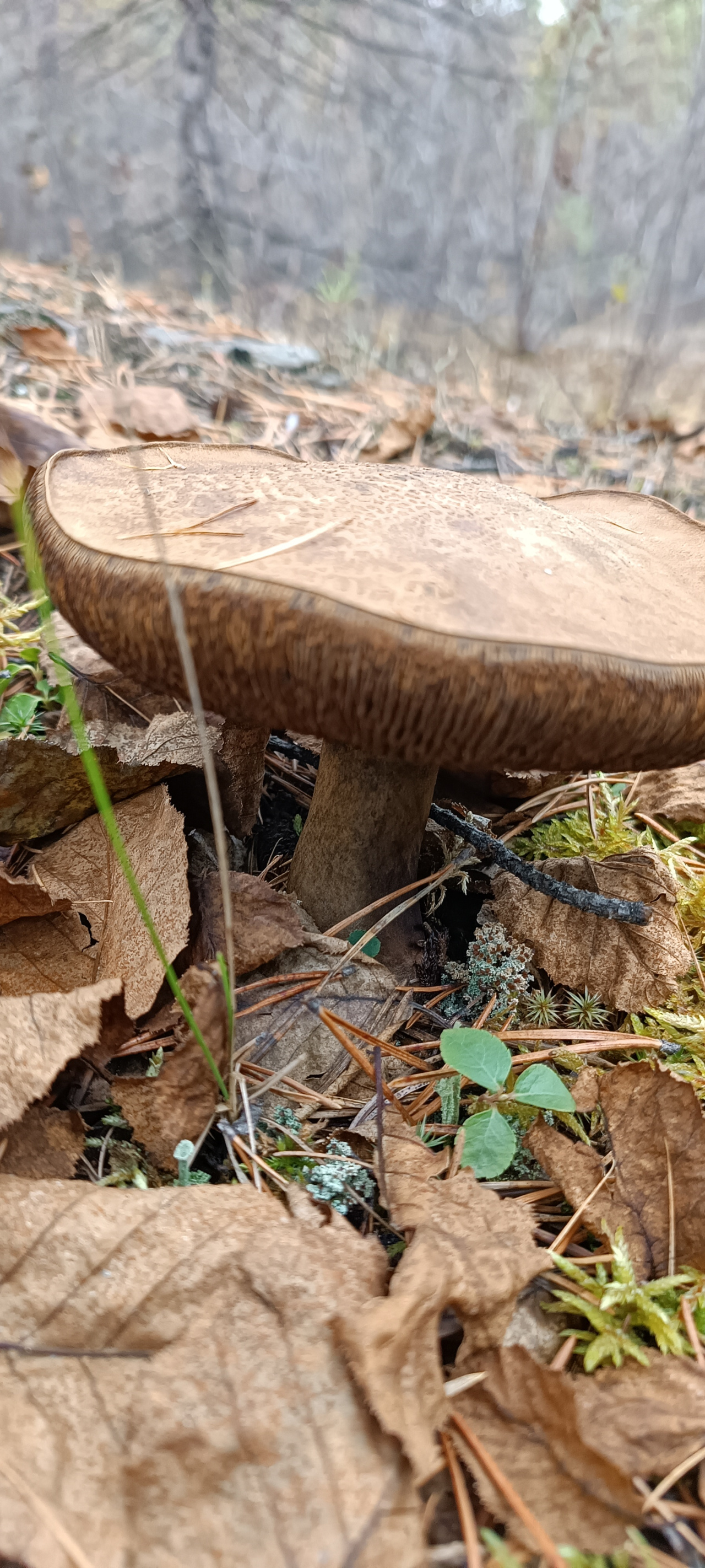 Описание гриба: Коричневого цвета, сухой какой-то. Очень часто попадается в тайге, не знаю съедобный или нет ,на всех фото один и тот же гриб