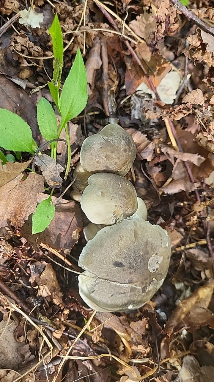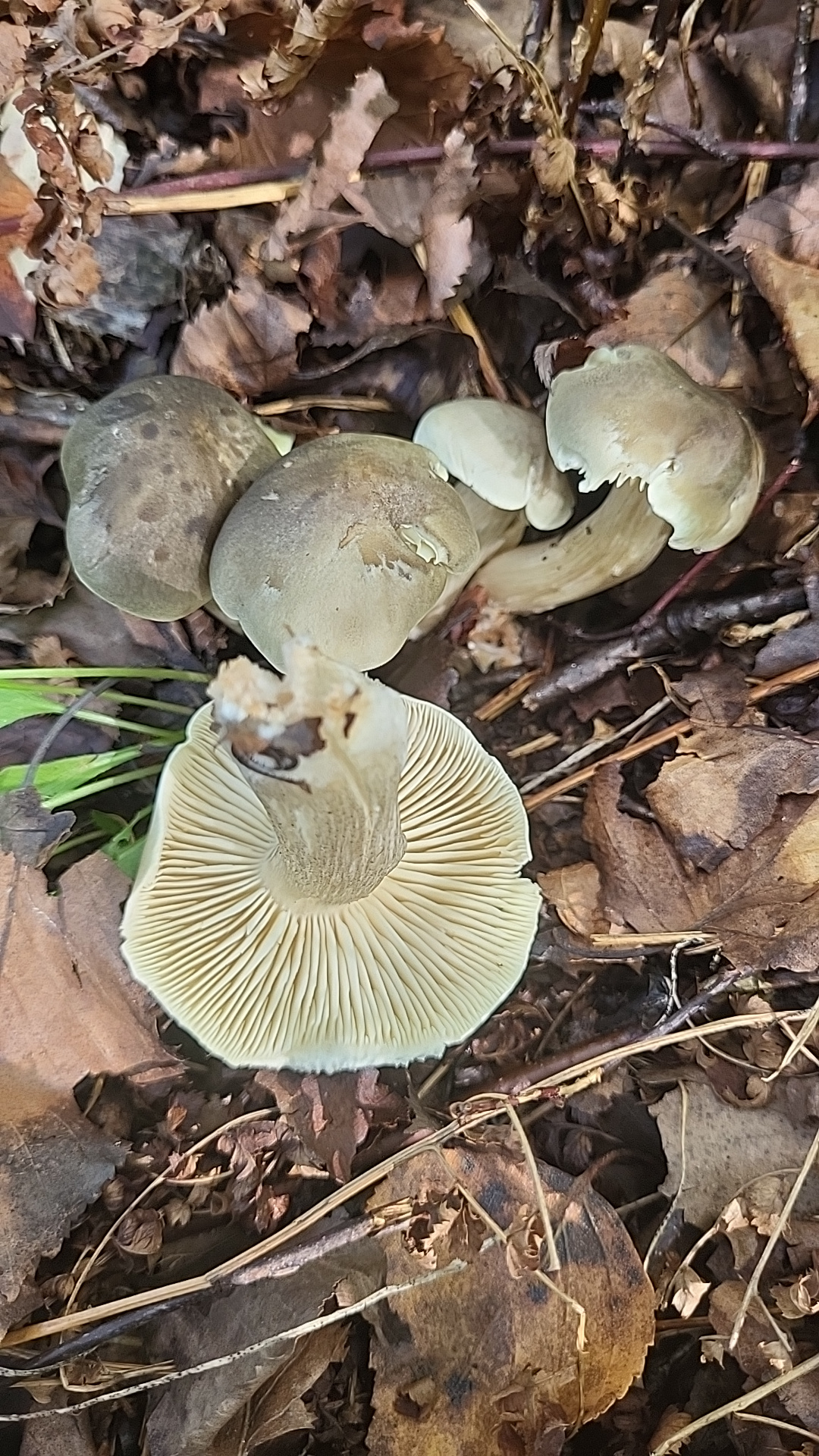 Описание гриба: Цвет шляпки от темно-серого, землистого до светло серого, плотные, ножка белая, растут плотной кучкой рядами, запах приятный, немного мучной.
