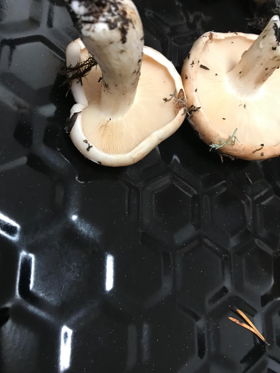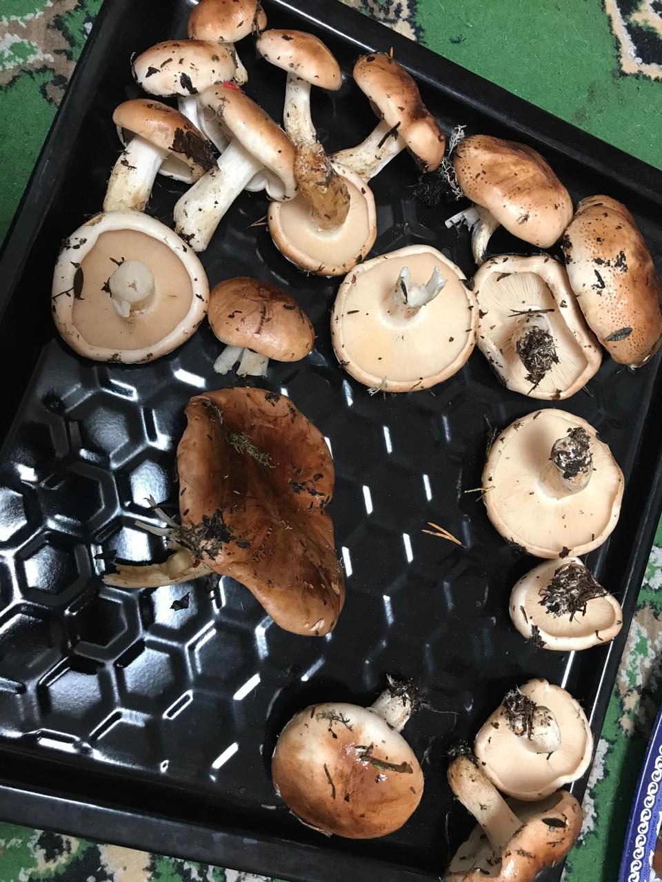 Описание гриба: Мурманск, смешанный лес. Мякоть и ножка кремового цвета, перепончатый, ножка слоится, ярко выраженной дырочки нет, шляпка коричневая, темнее к центру, без волн, есть выраженные точки у краев взрослых грибов (родинки). Взрослые грибы слегка неправильной формы, напоминают грузди. Шляпка слегка маслянистая, у масленка сильнее. Цвет не меняет. Размер до 10-15 см, запах приятный грибной, прелью, не сильный.