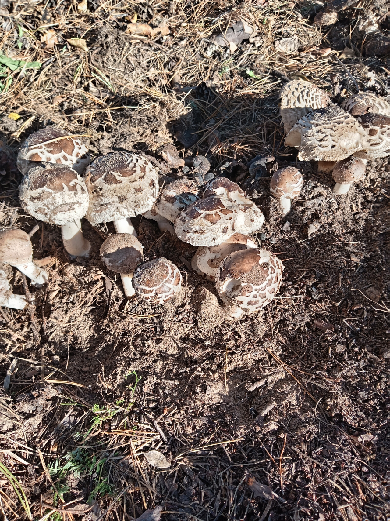 Описание гриба: То ли поганки, то ли шампиньоны? Растут кучей, Беларусь. Под соснами.