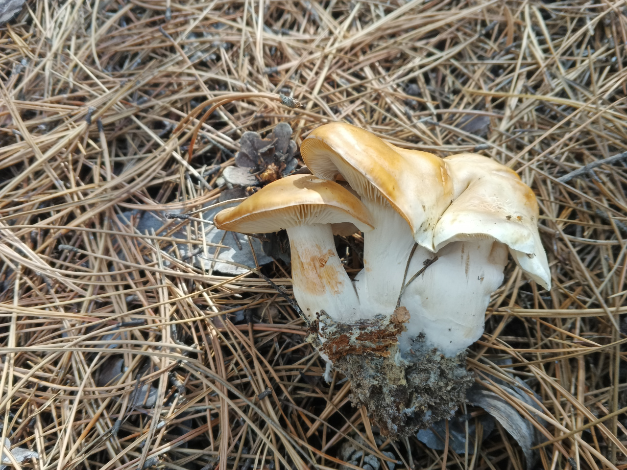 Описание гриба: Место сбора сосновый лес, растут кусками. Что это за гриб?