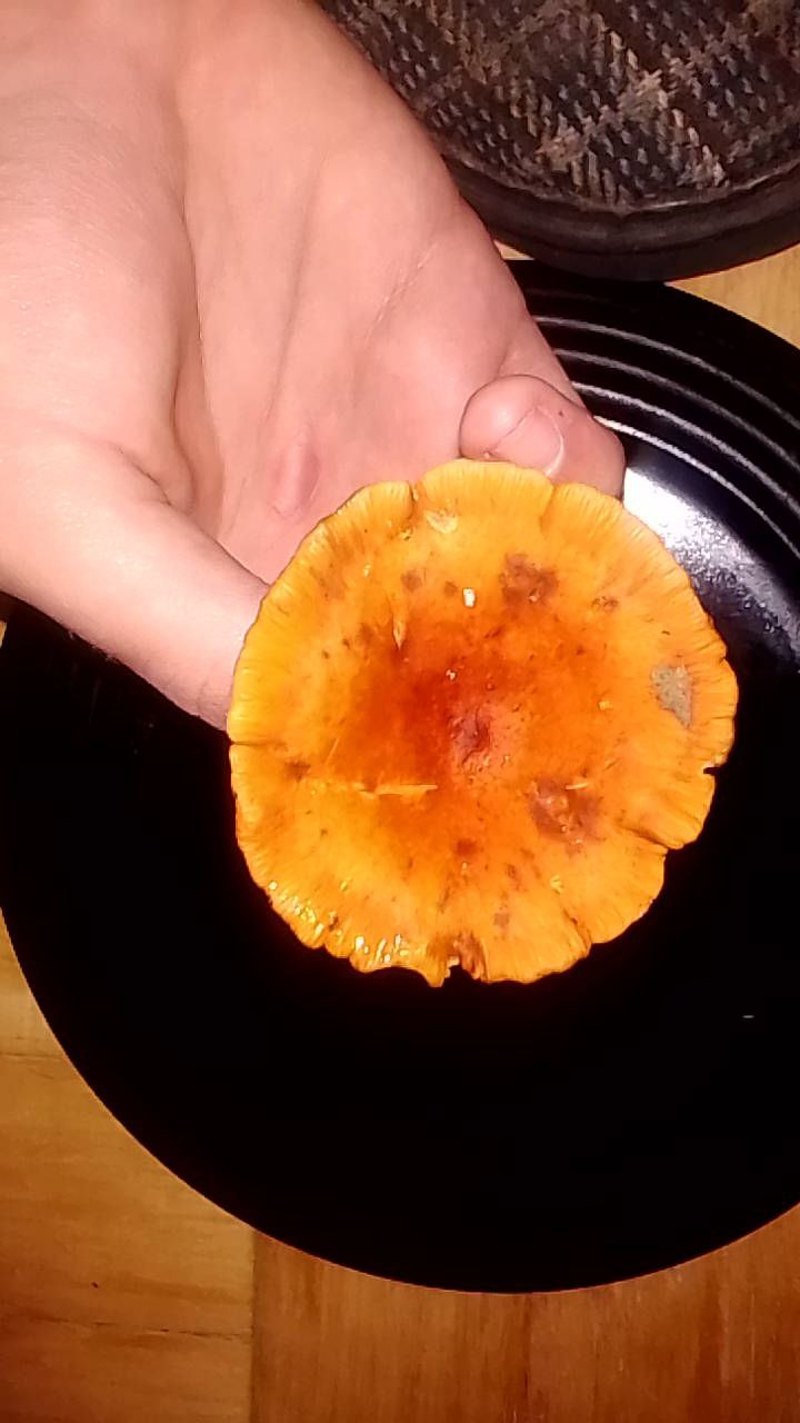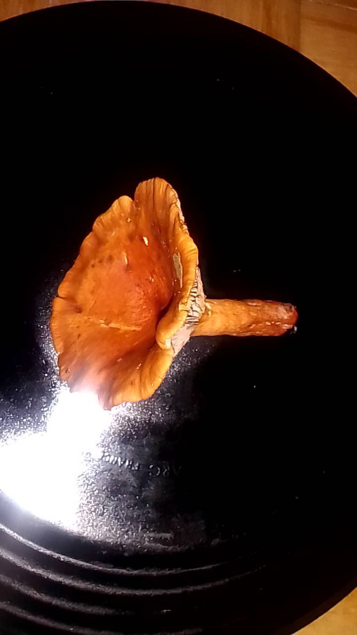 Описание гриба: маленький гриб оранжевого цвета, без кольца, был найден в Санкт-Петербурге, Парк-Сосновке