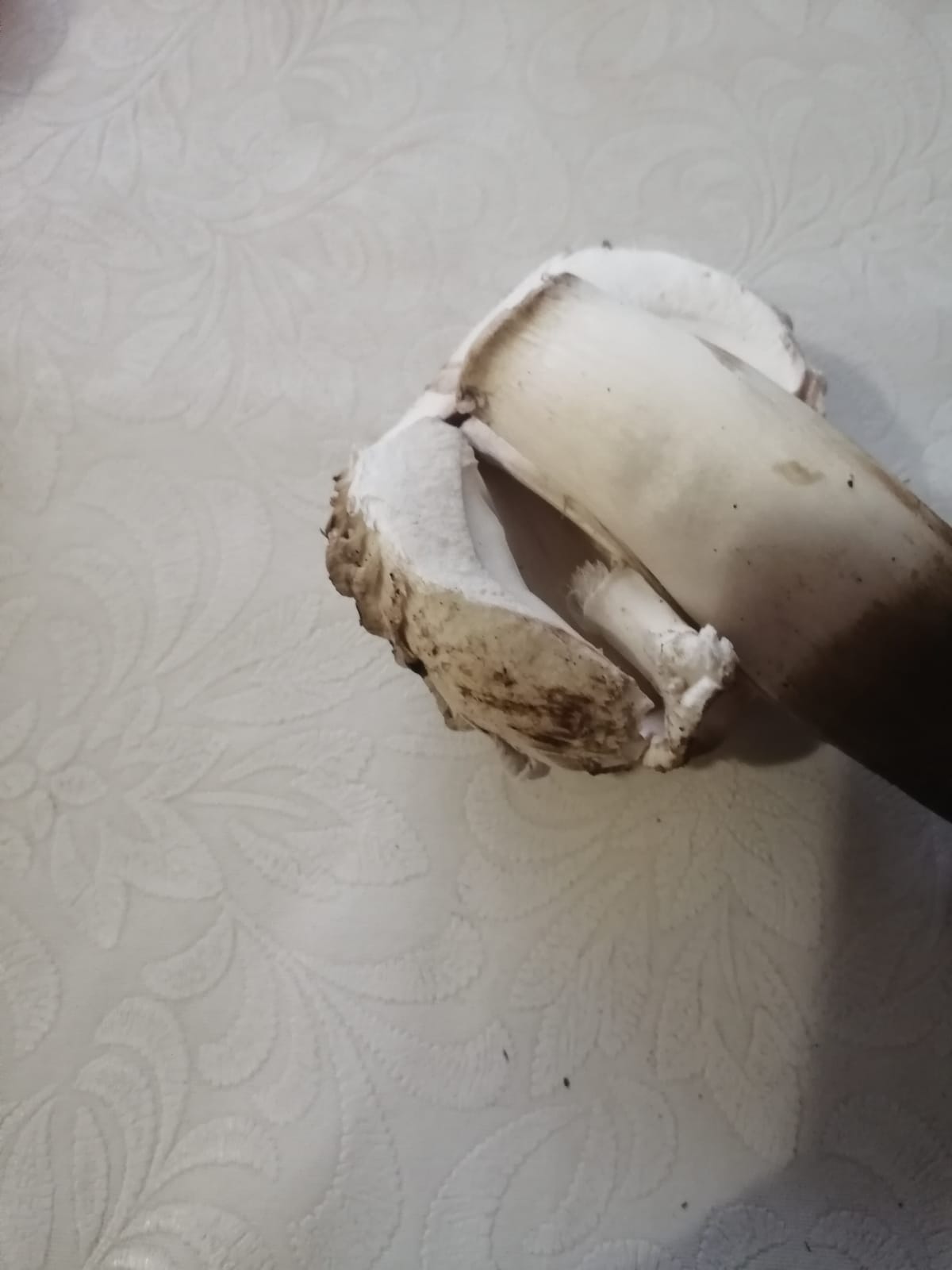 Описание гриба: Крупные, некоторые до 15 см в длину, с мясистой ножкой. Шляпка пластинчатая, на срезе цвет практически белый, не розовеет, не темнеет, не синеет, никак не меняет цвет. Запах обычный, грибной. Нашли на огороде в Пачелмском районе Пензенской области