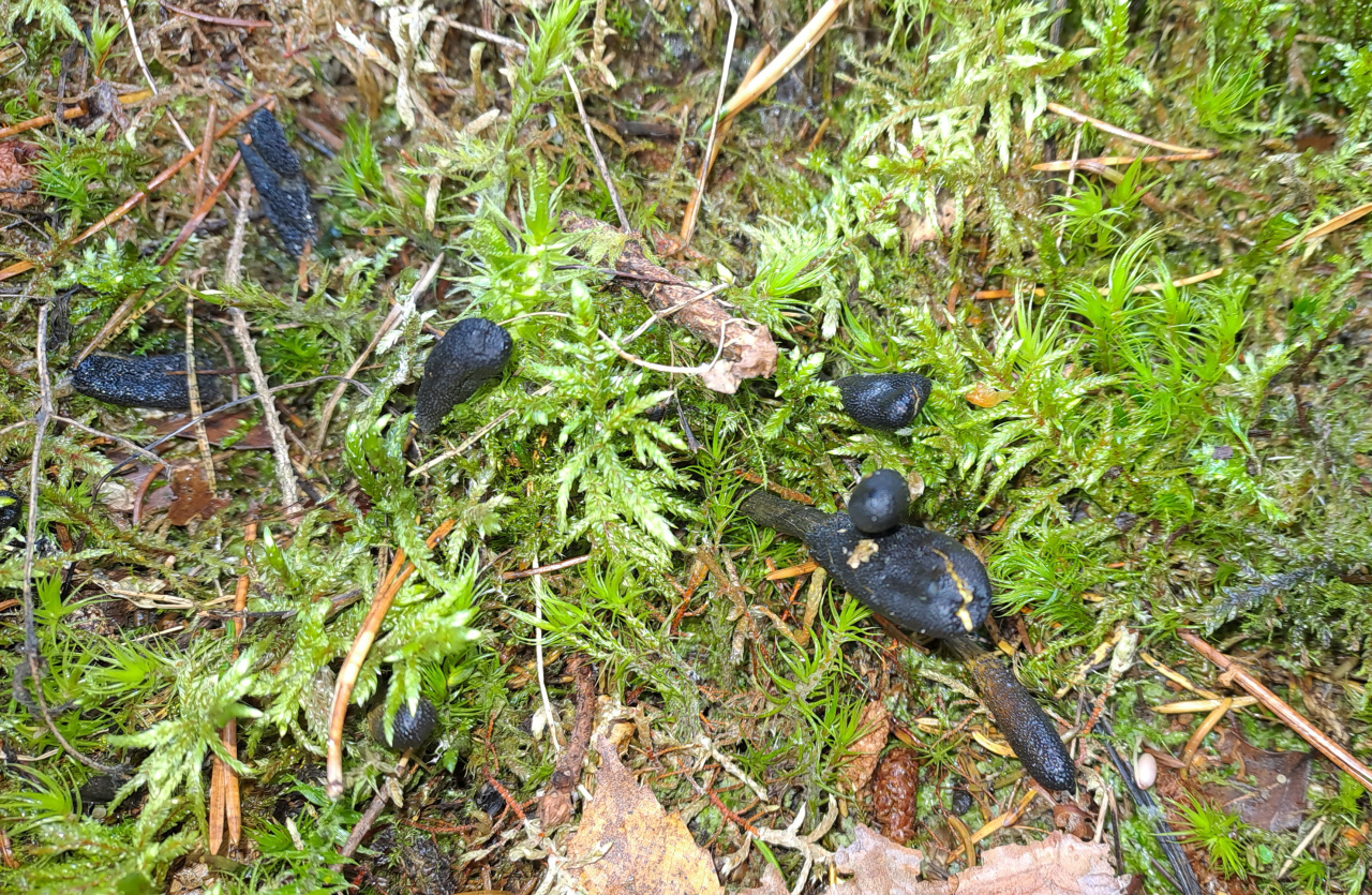 Описание гриба: Гриб встречен в еловом старовозрастном лесу недалеко от поселка Комарово. Группа булавовидных грибов торчала из мха. Может быть это кордицепс офиглоссовидный?
