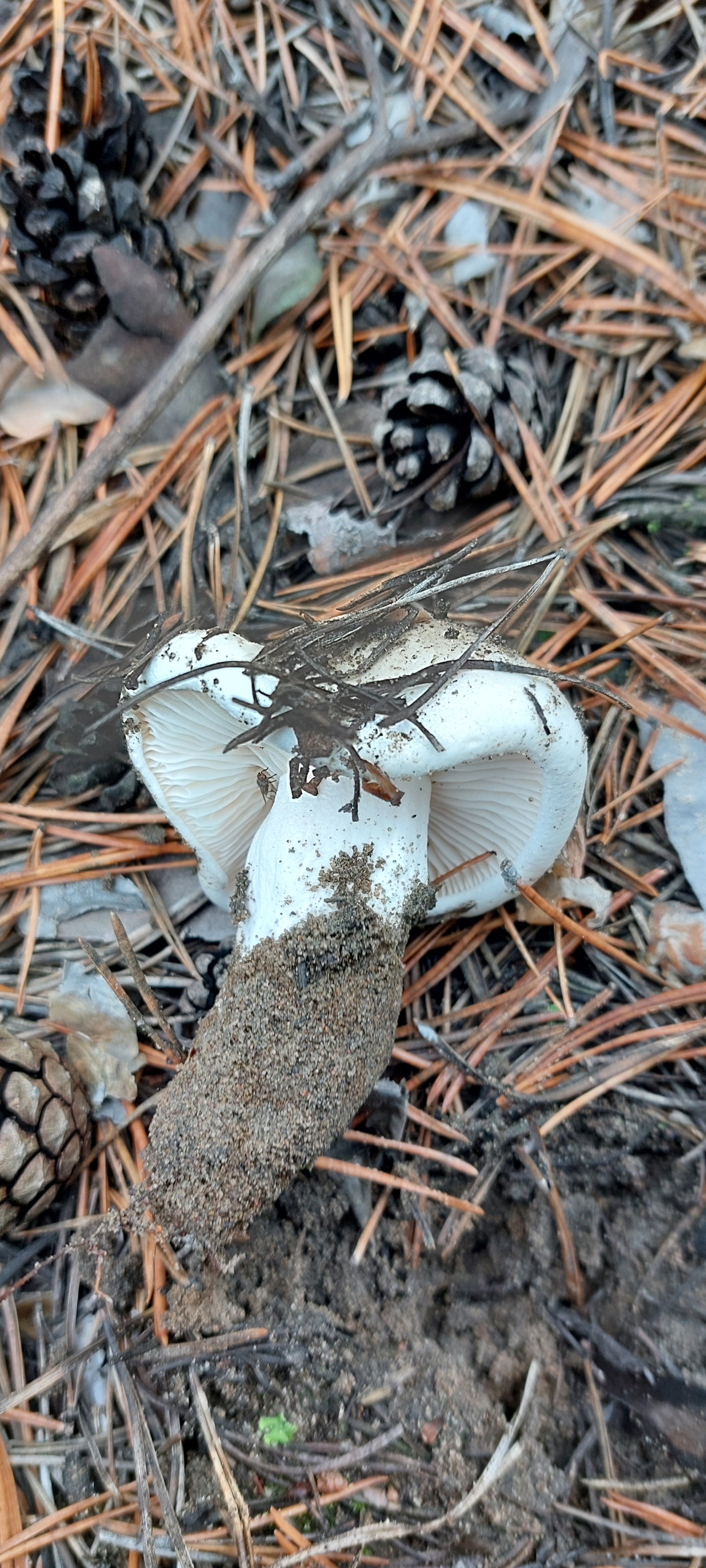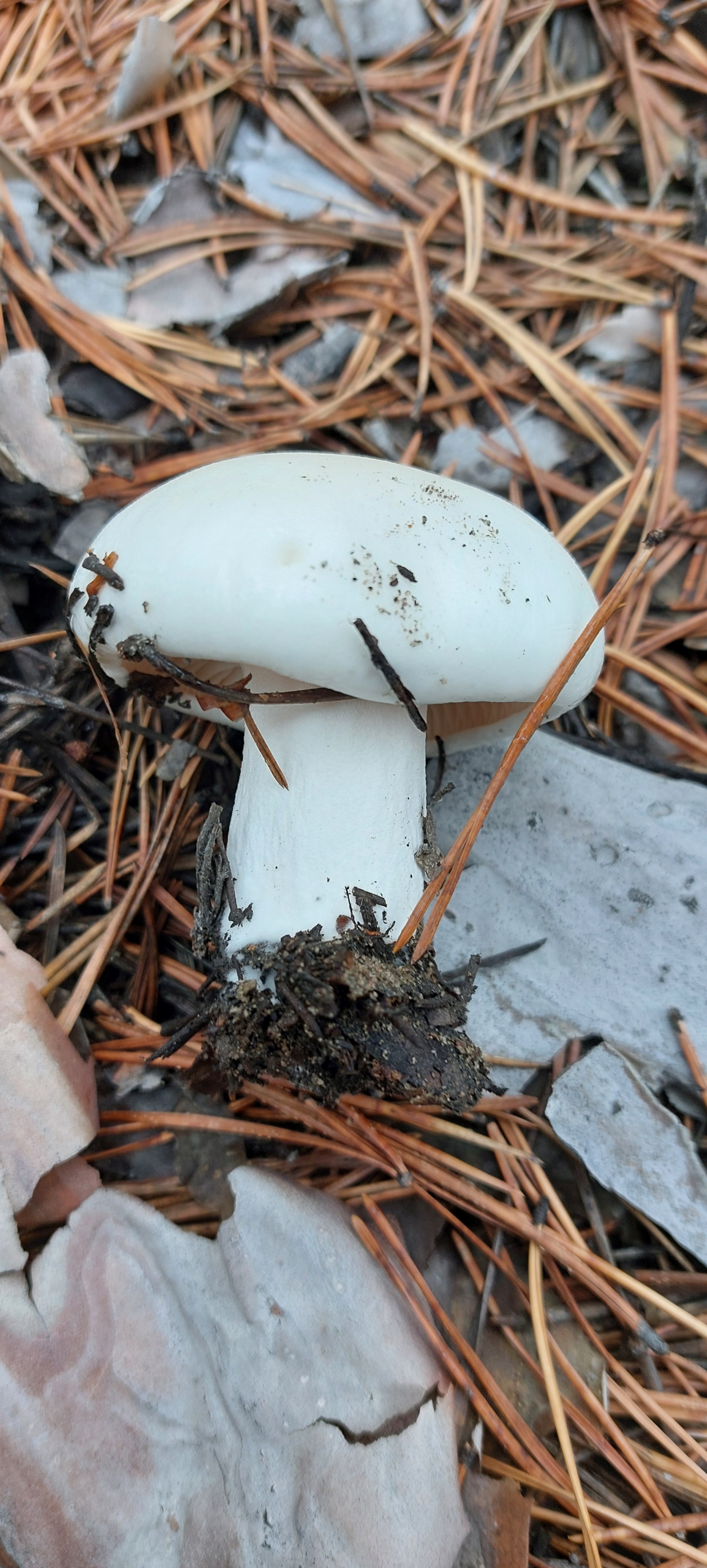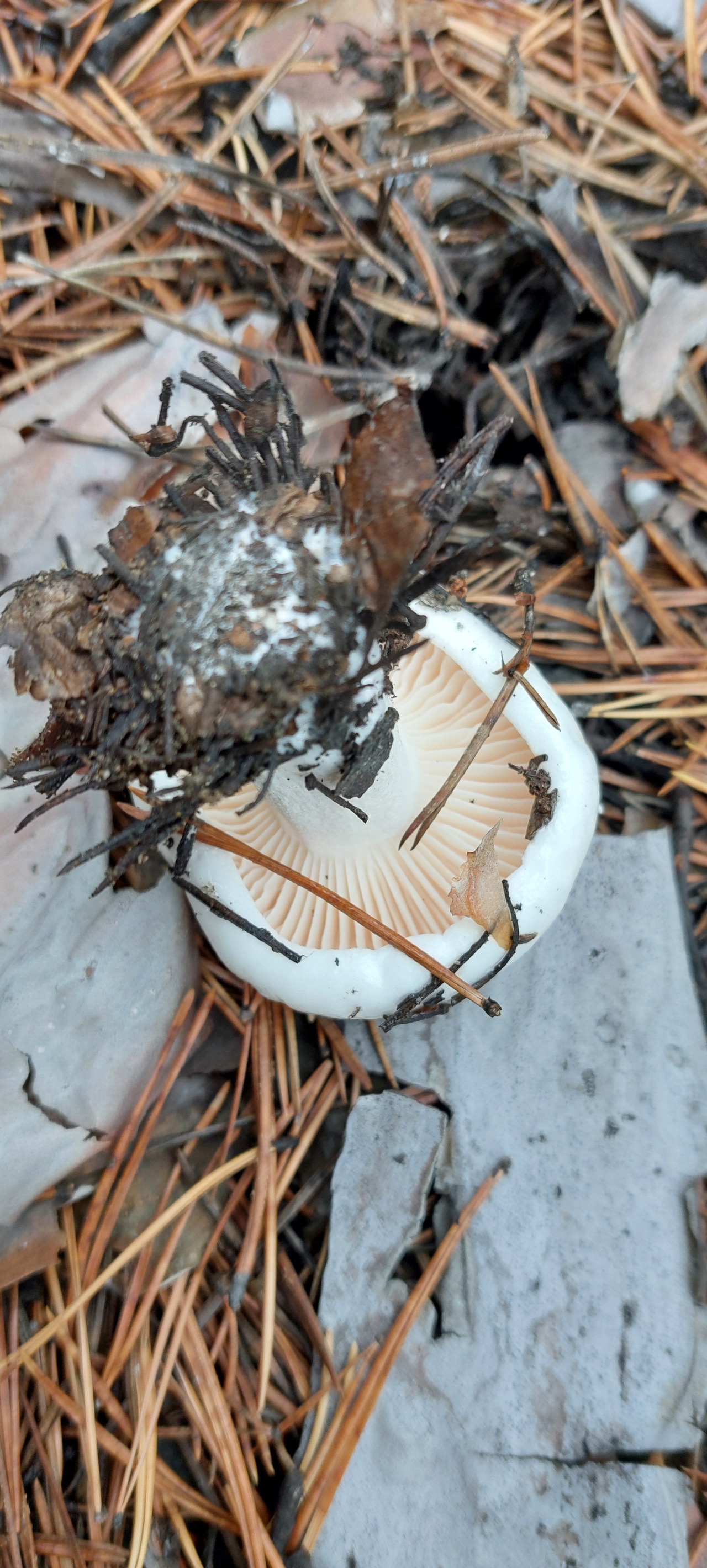 Описание гриба: Грибы были найдены в Сосновом бору Восточного Казахстана. Грибы растут небольшими семьями, на ощупь плотные, мясистые. Запах приятный грибной. Пластинки редкие, белые иногда слегка кремовые.