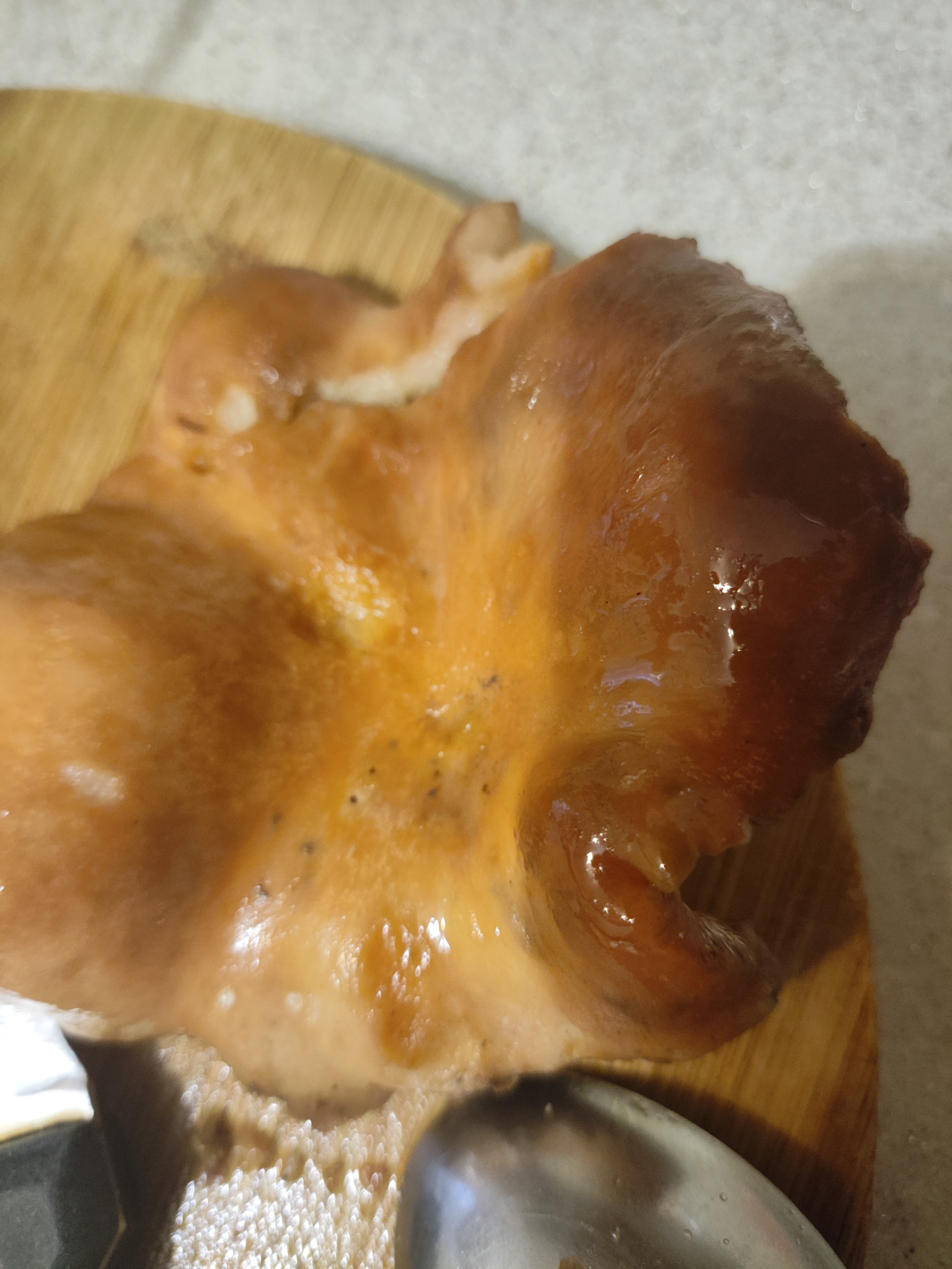Как версия: Рыжик поражённый Гипомицесом. Вроде заметна атрофия пластин и превращение в «глухой» Рыжик. Я Рыжики с подобной степенью поражения Гипомицесом употребляю в еду. Но дождитесь ещё мнений участников сообщества и почитайте про Гипомицес на сайте.