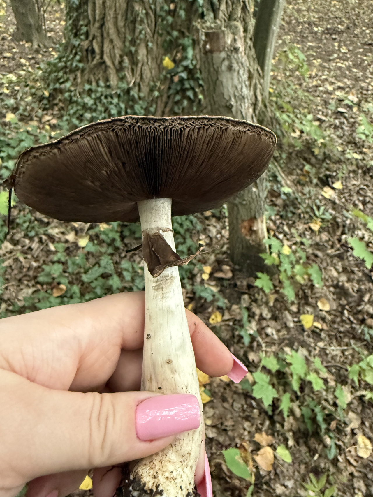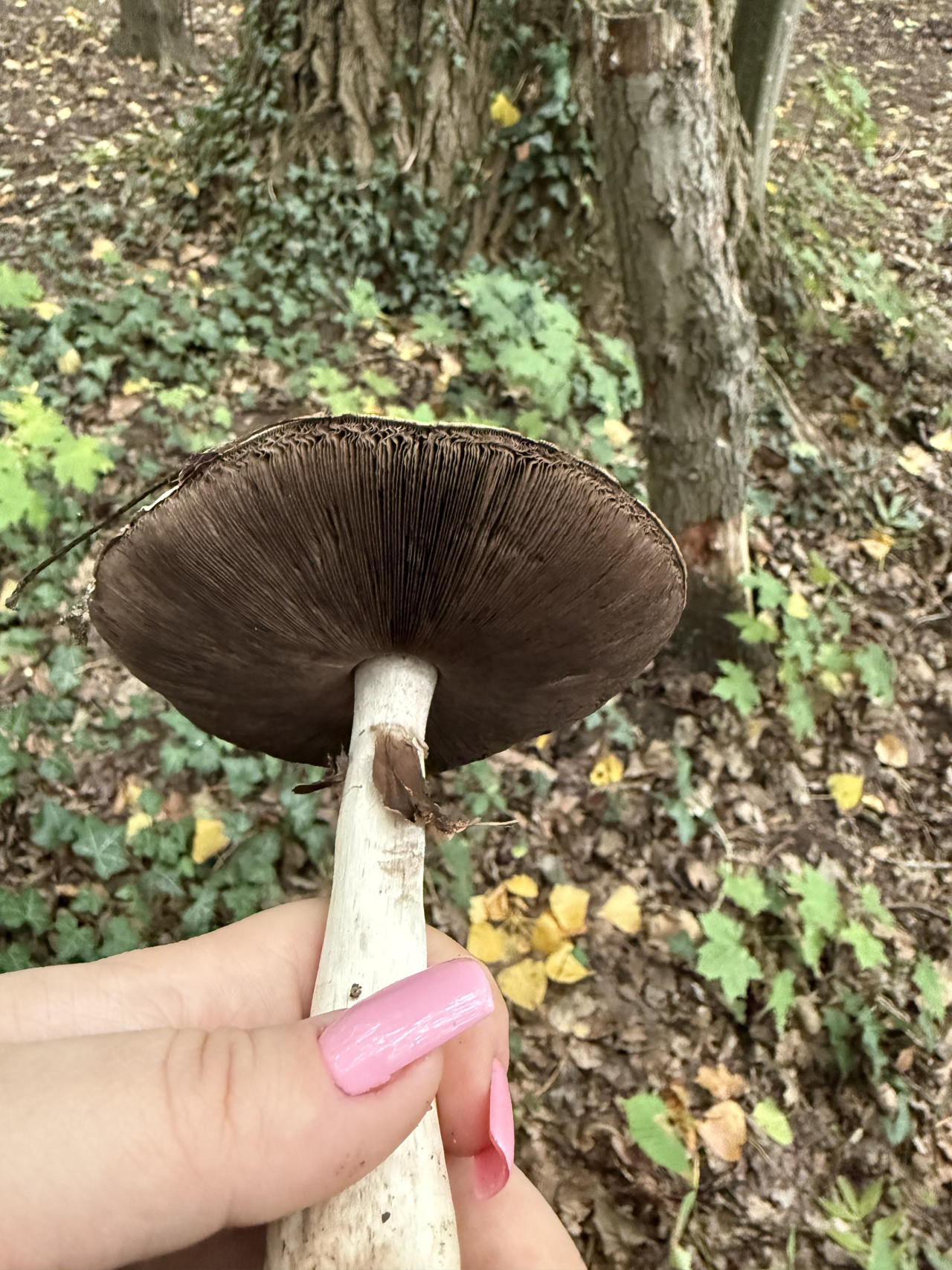 Описание гриба: Молодые тела с розовой пластинками а взрослые с темно коричневыми. У молодых запах химический а у взрослых грибной