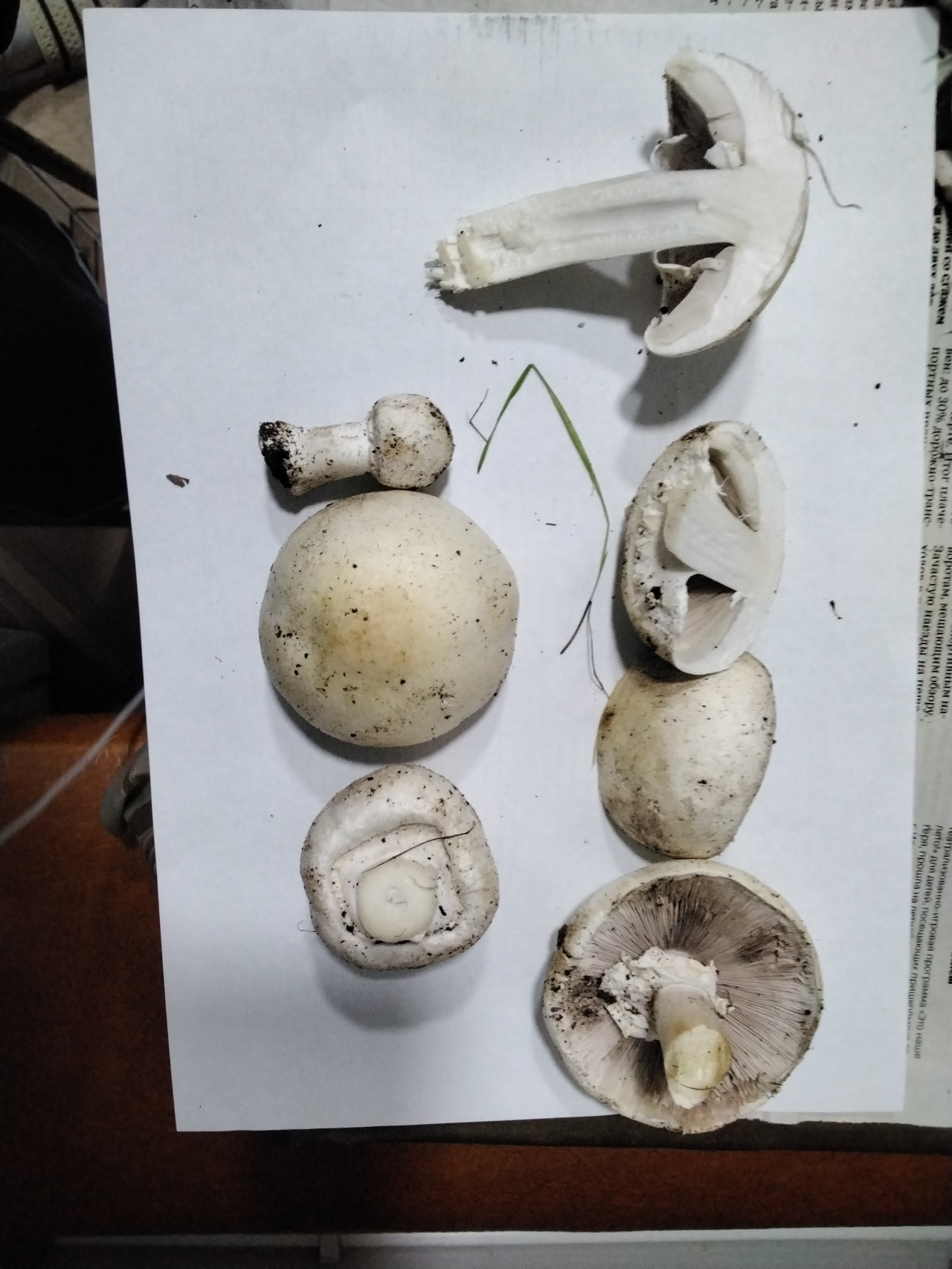 Описание гриба: Собраны в смешанном лесу. Шляпки слегка побуревшие.Мякоть белая. На срезе почти не изменяется. Пластинки светло- розовые.