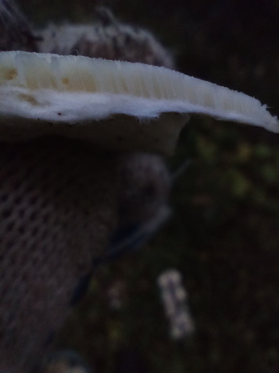 Описание гриба: Смешанный лес, ветка возможно хвойная, но это не точно. Запах есть, но невнятный. Режется с трудом, плотный, эластичный, прочный.