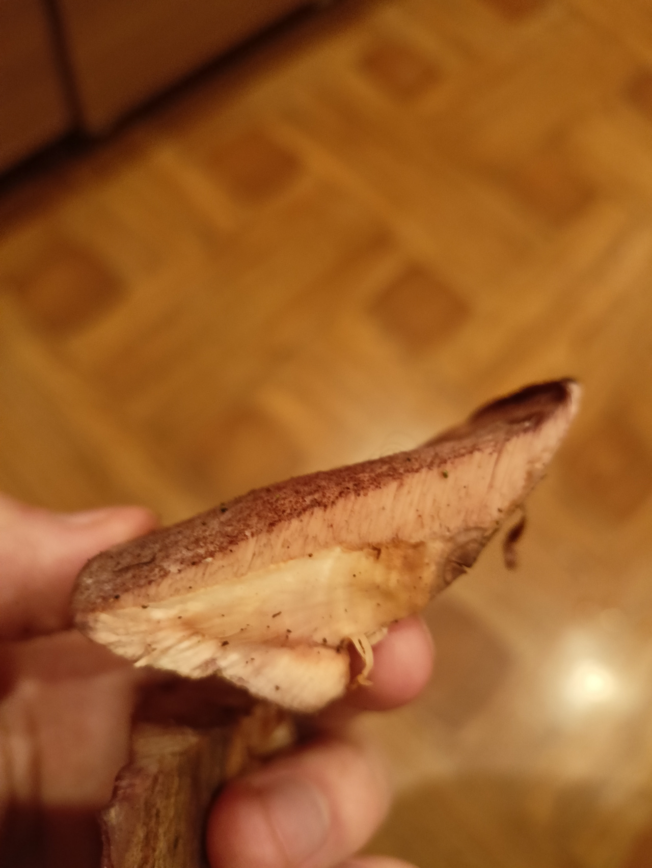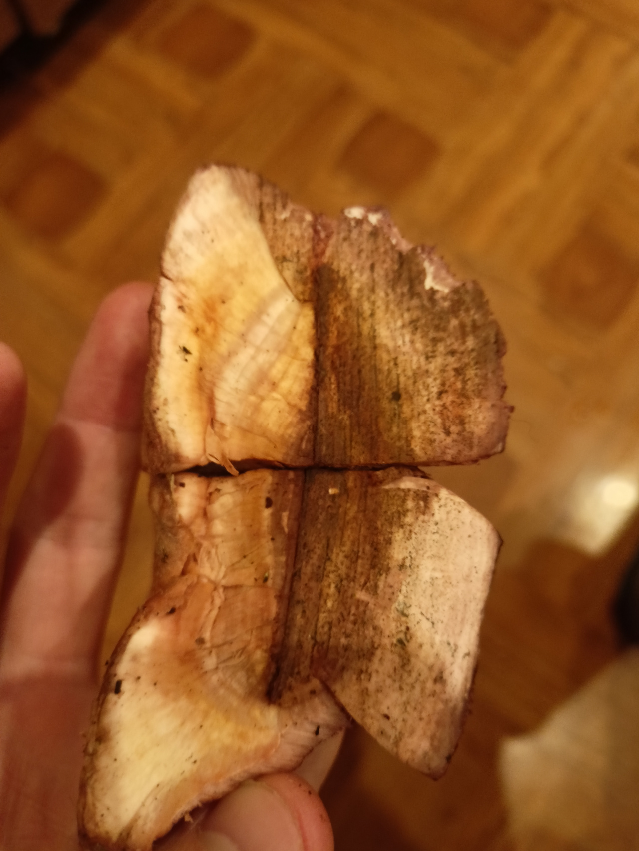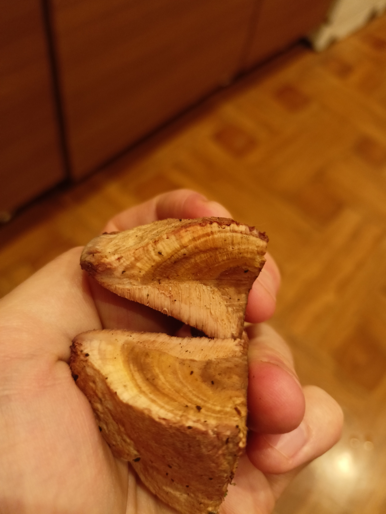 К сожалению, забыл сфотографировать грибы в естественных условиях. «Правый», как мне показалось, рос именно на поваленной сосне, но я могу ошибаться. Вот еще пару фотографий.