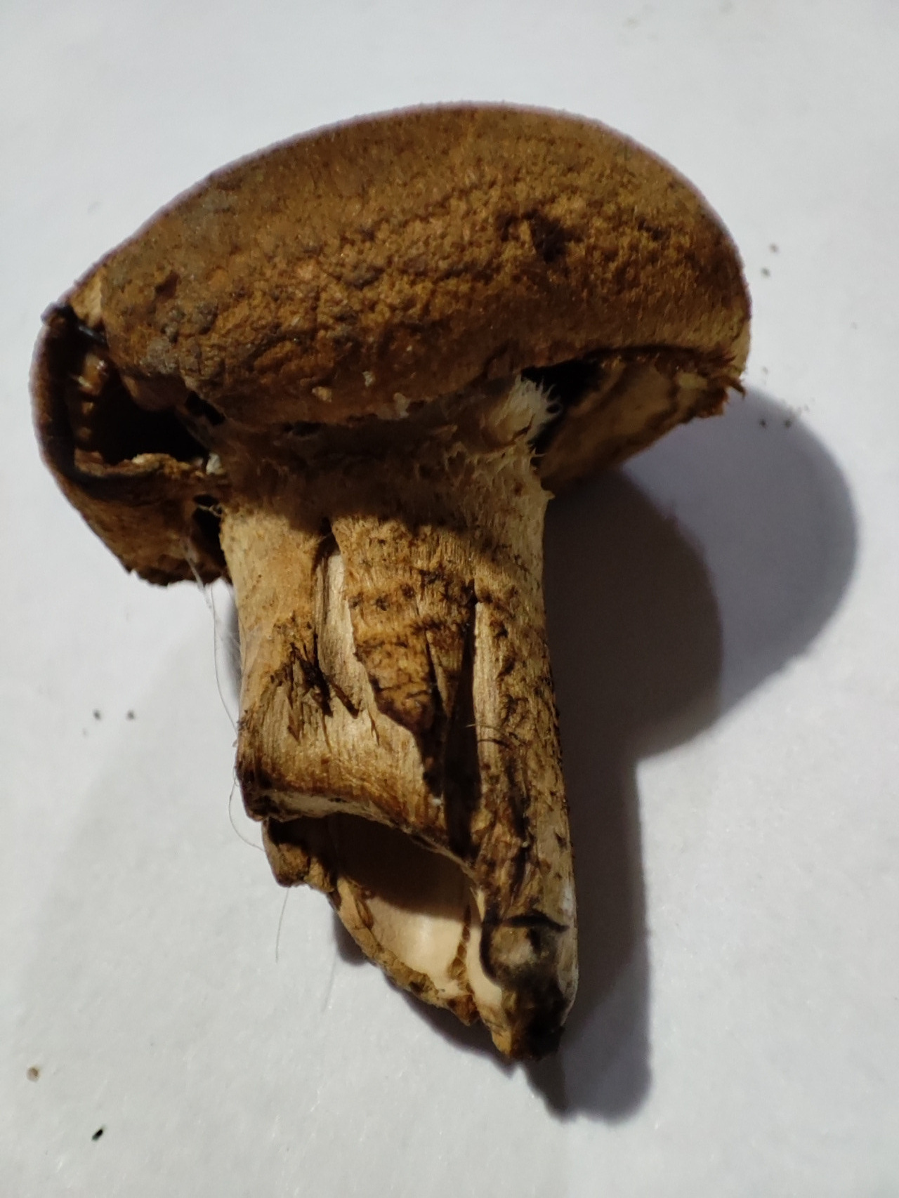 Описание гриба: Чешуйчатый, коричневый, полая ножка, шляпка снизу закрыта пленкой
