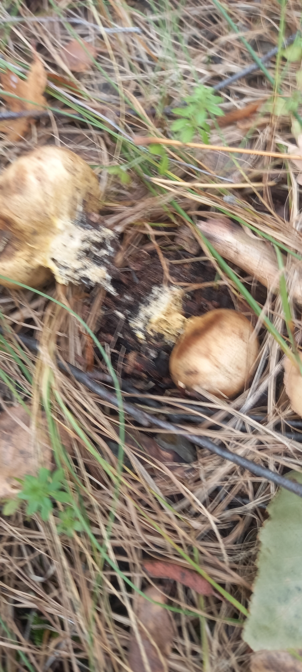 Ложнодождевик либо луковичный либо обыкновенный. Скорее всего Луковичный. Не съедобен совсем