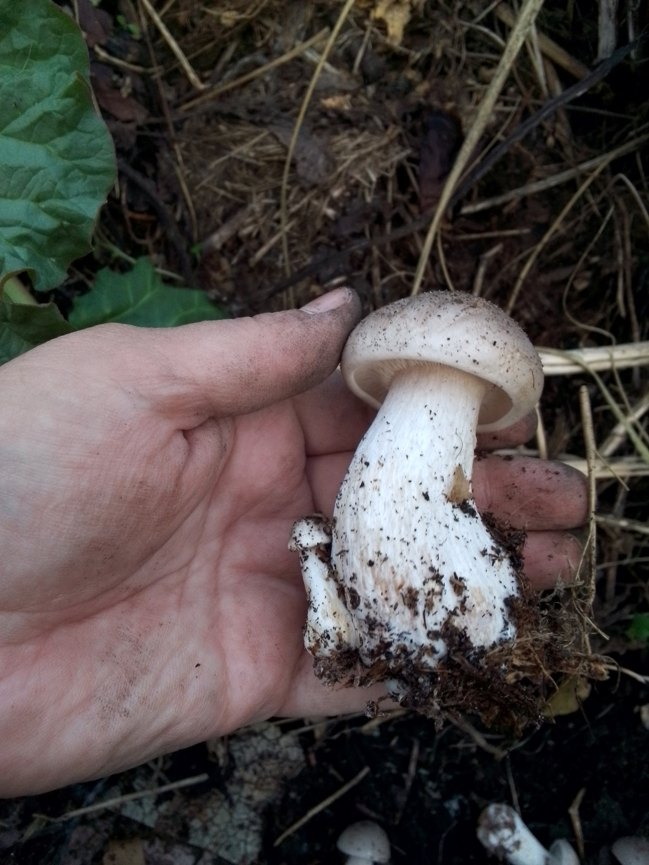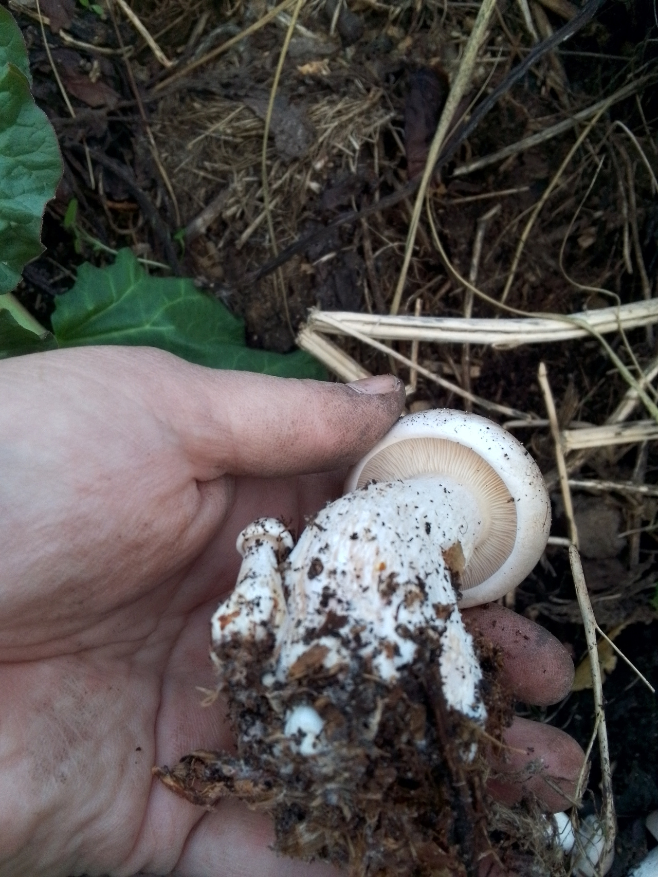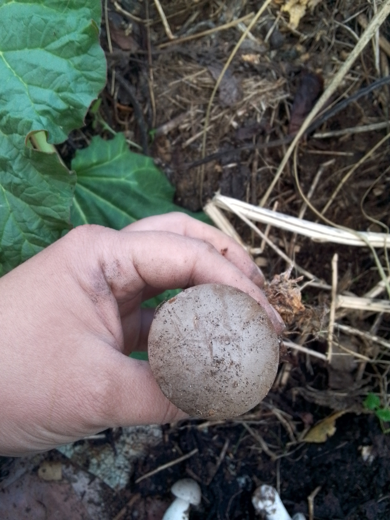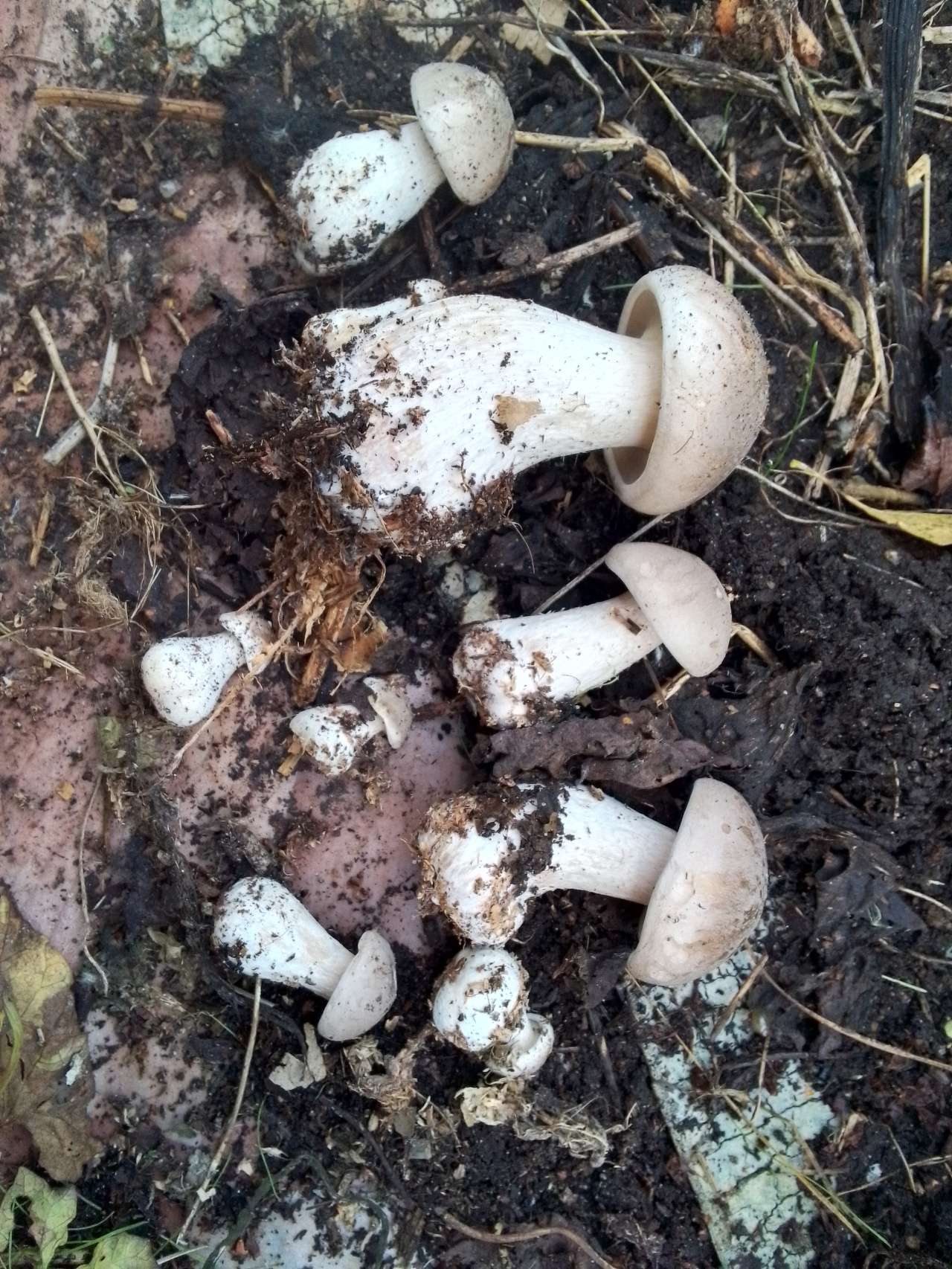 Описание гриба: Пластинчатые. Если бы не пластинки, можно принять за благородные грибы. Выросли в огороде на кампостной куче (50/50 опилки микс разных пород деревьев и выполотая трава). Грибочки молодые. Запах средний между шампиньонами и белыми, не сильный. Сидели семейкой.