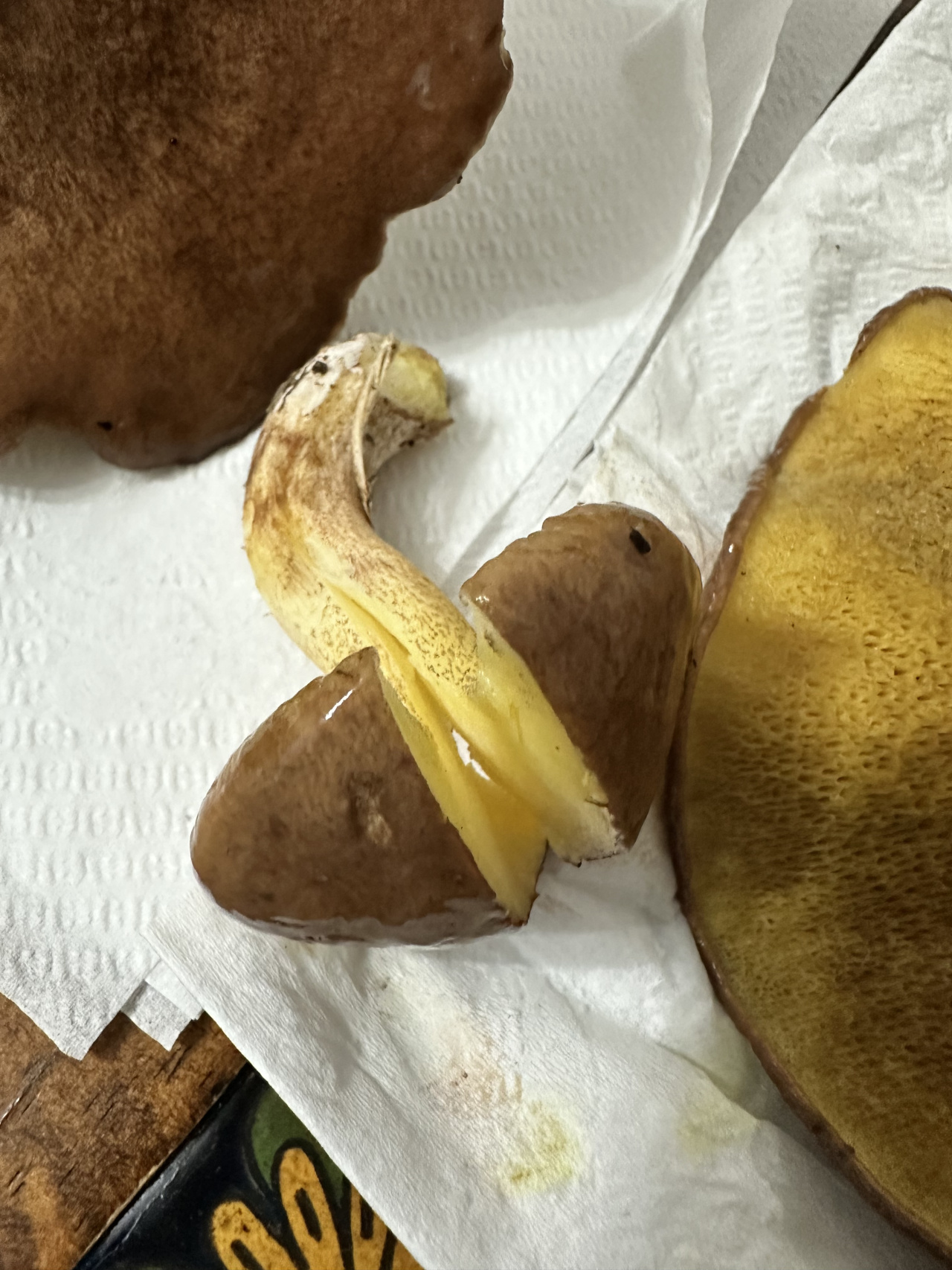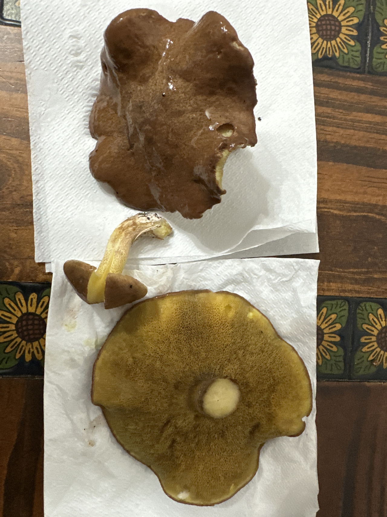 Описание гриба: Собирали на участке где растут сосны и пальмы, приятный запах грибной. Сделал срез, прошло минут 30 и цвет не поменялся