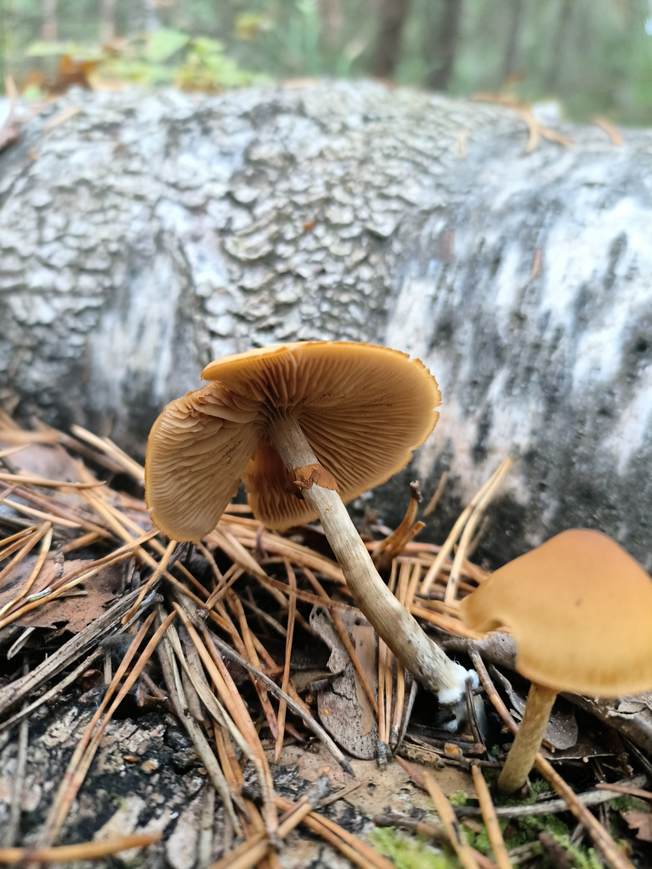 Описание гриба: Подмосковье, 10 октября. Смешанный лес, на берёзовом валежнике. Пахнет свежей сыростью. Легкое изменение цвета от влаги: ближе к низу шляпки — темнее, не на всех.