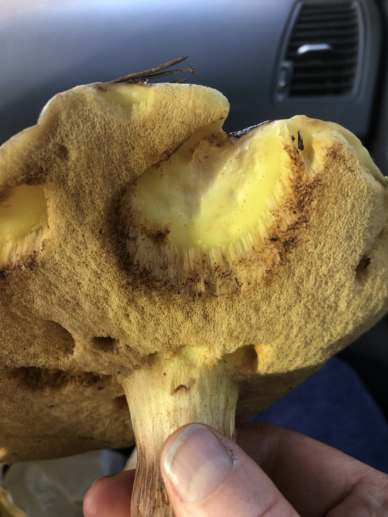 Описание гриба: Место сбора Павловский Посад, приятный грибной запах, трубчатый, под шляпкой яркожелтая мякоть, срез белый, цвет не изменяется