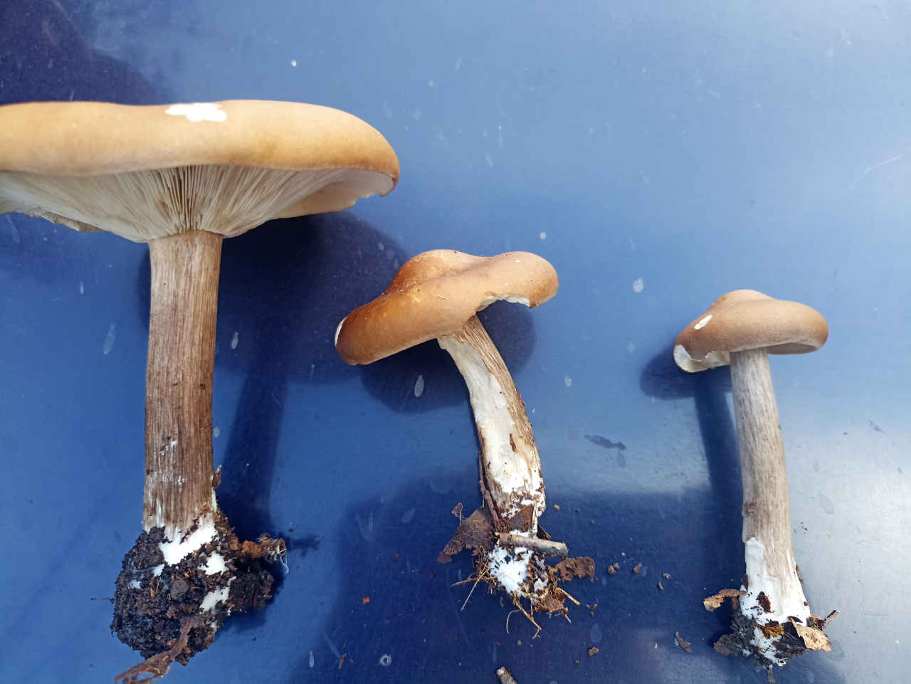Описание гриба: Смешанный лес, под дубом, гриб плотный, ножка полосатая, шляпка коричневая, пластины белые приросшие к ножке