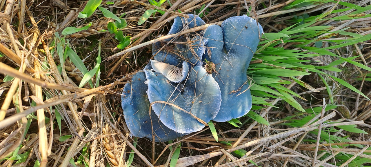 Ножку не видно. Сверху похоже на строфарию сине- зелёную