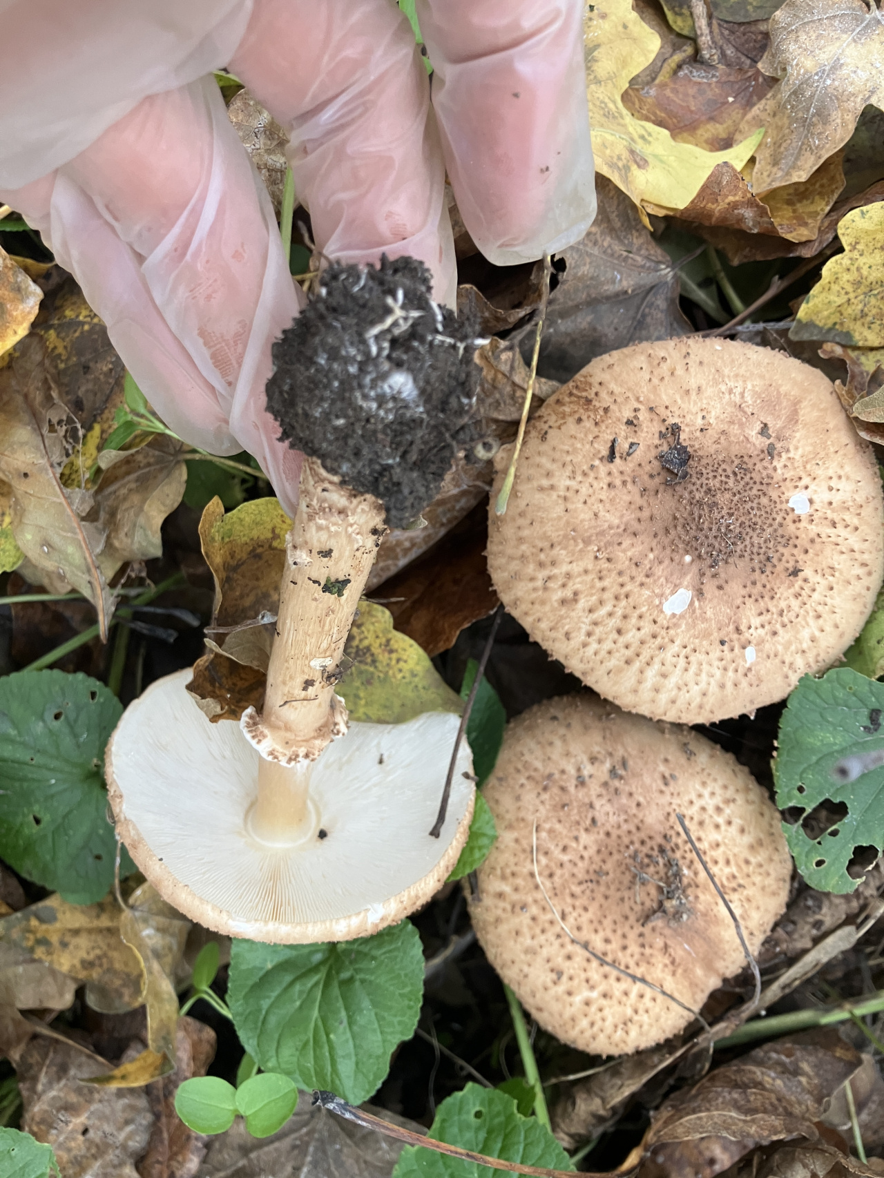 Описание гриба: Лиственный лес, запах пряный, очень напоминает запах дождевика, мякоть белая, цвет не меняет, ножка с юбочкой, волокнистая