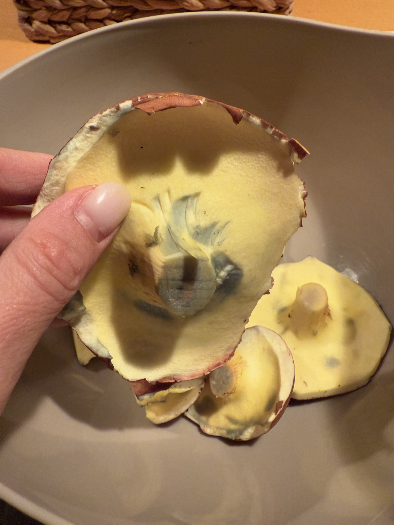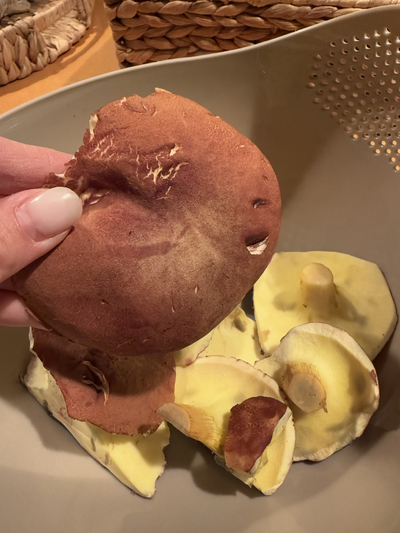 Описание гриба: Коричневая шляпка, губчатый желтый низ, при разрезе слегка синеет, сбор в лесу Крыма