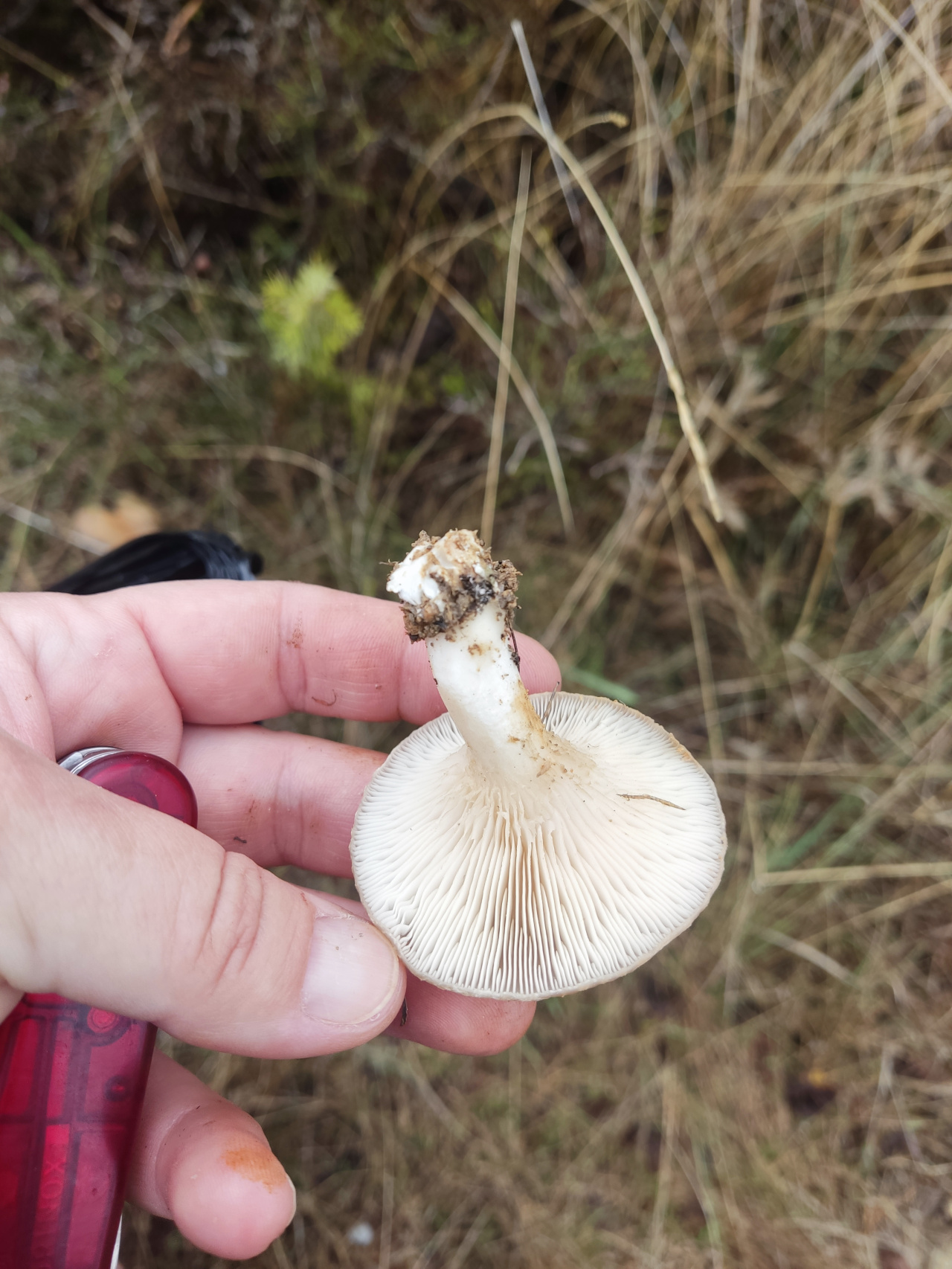 Описание гриба: Гриб собран в черте города, на открытом участке с травой, вокруг сосняк, растёт поодиночке. Запах отсутствует, ножка мясистая, как резиновая. Цвет не меняет.