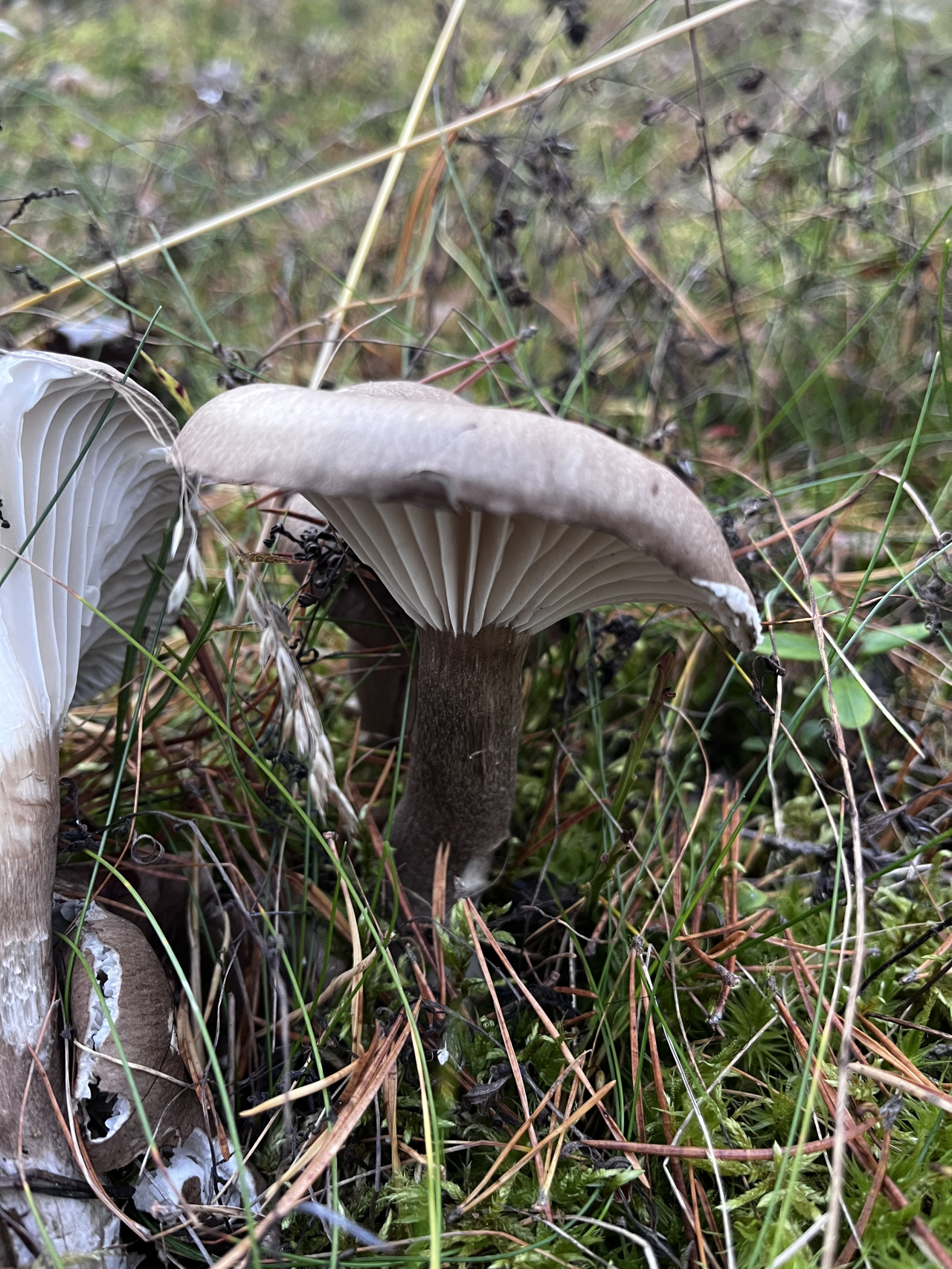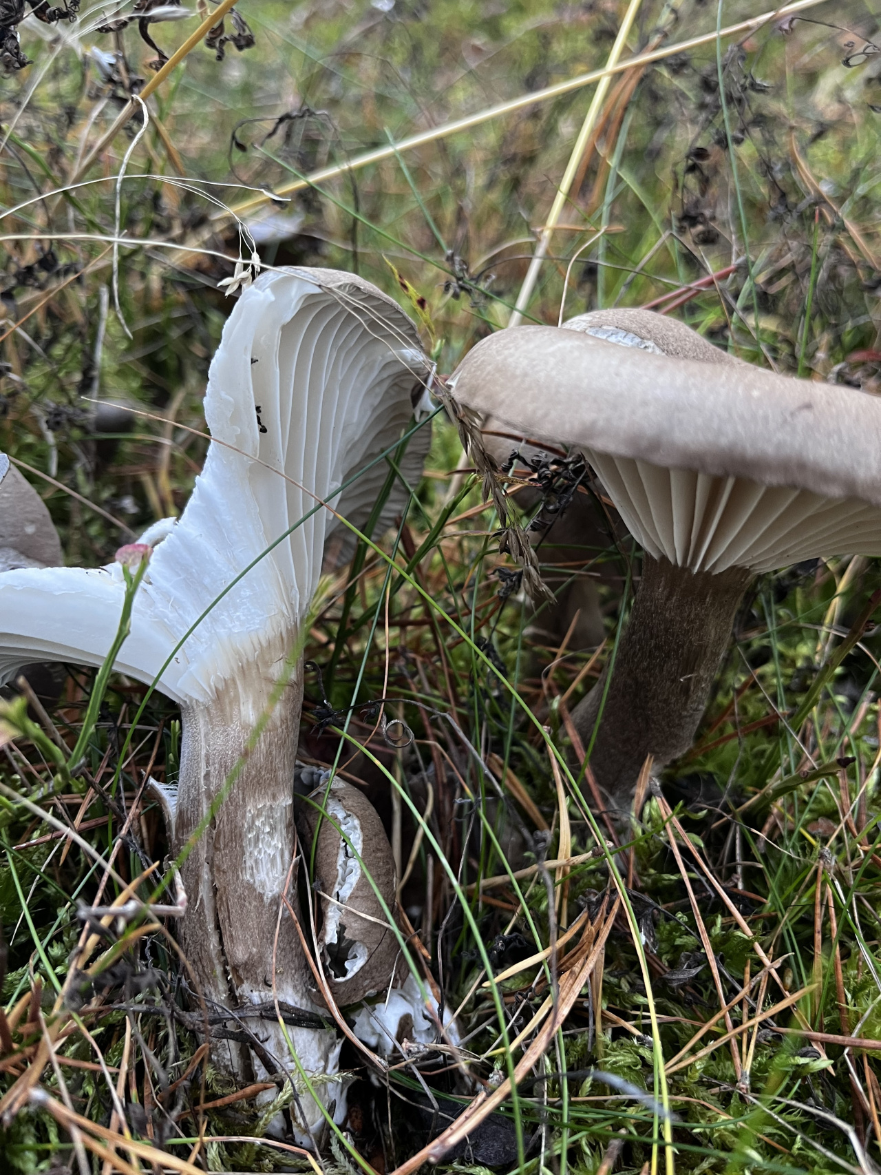 Описание гриба: Четкий переход от ножки к пластинкам, ножка темнее